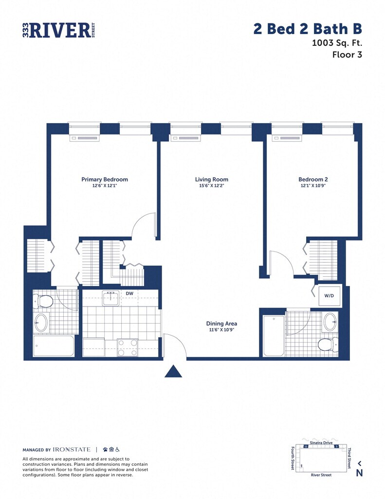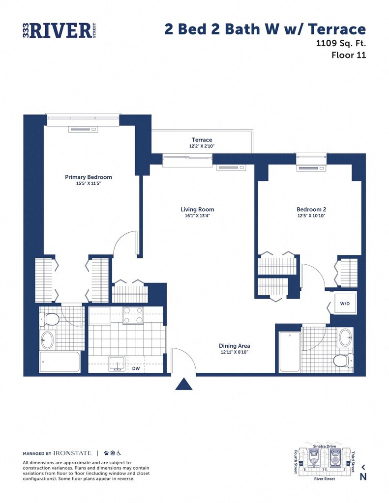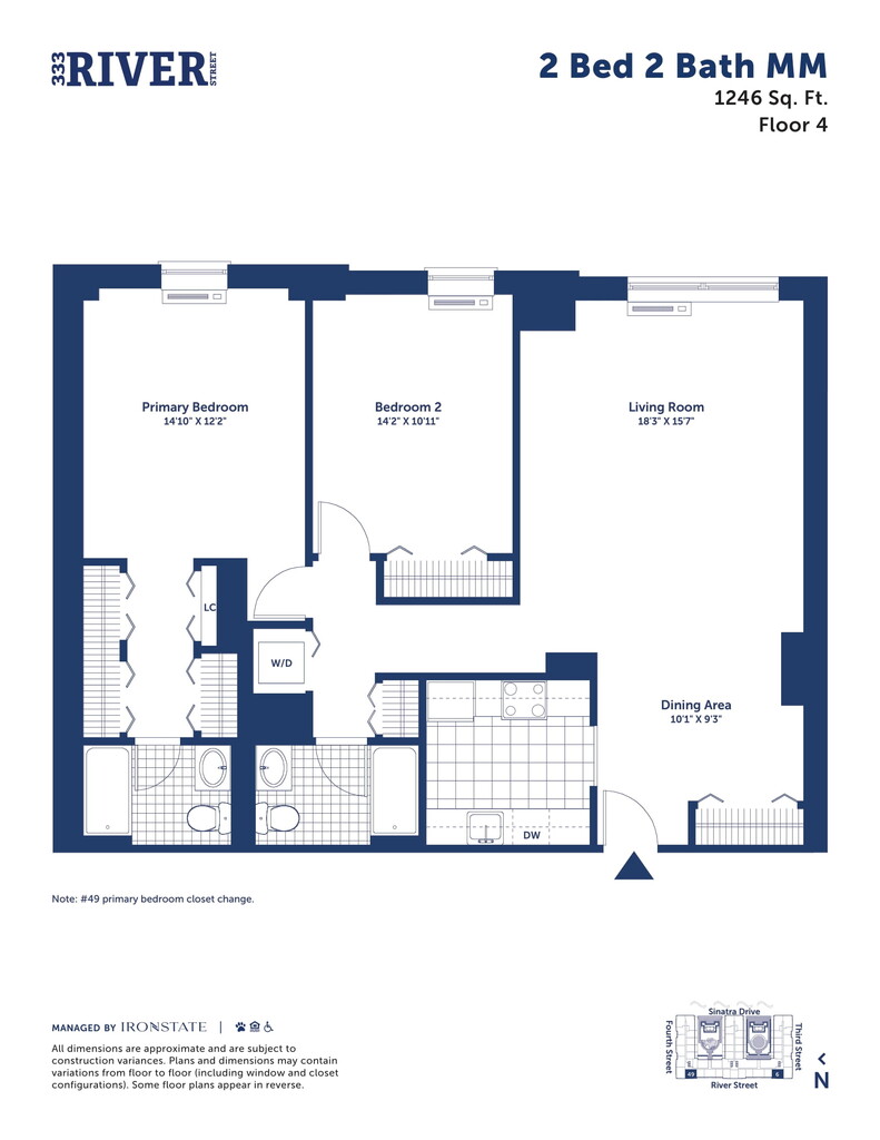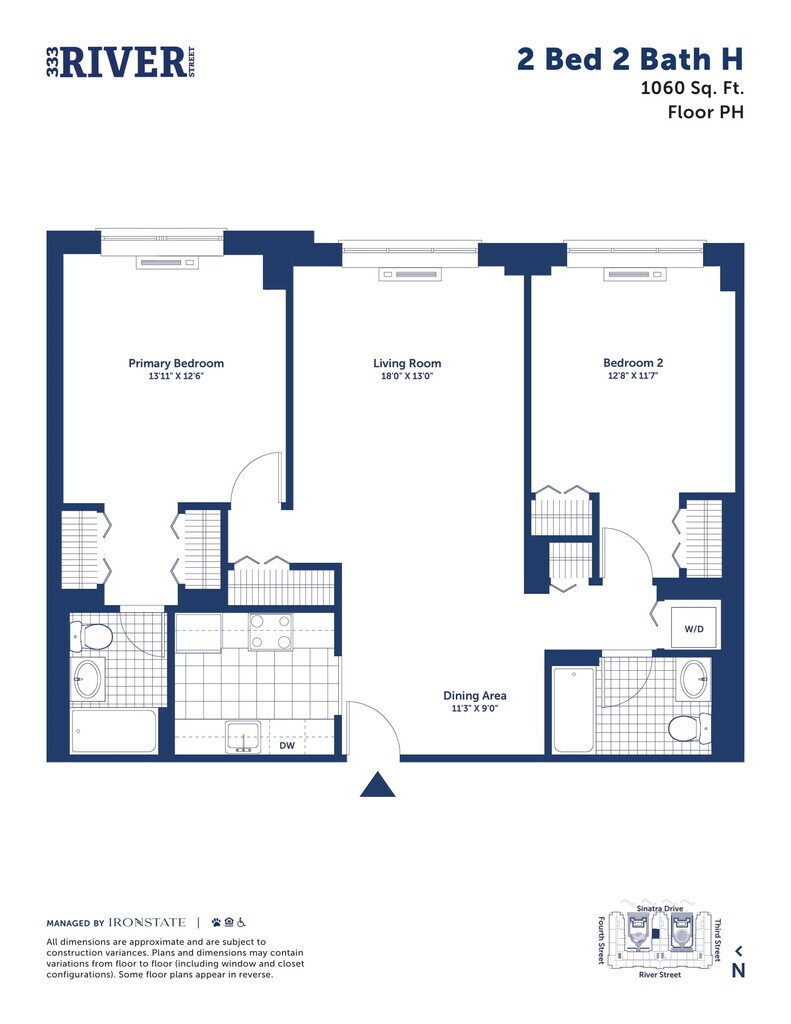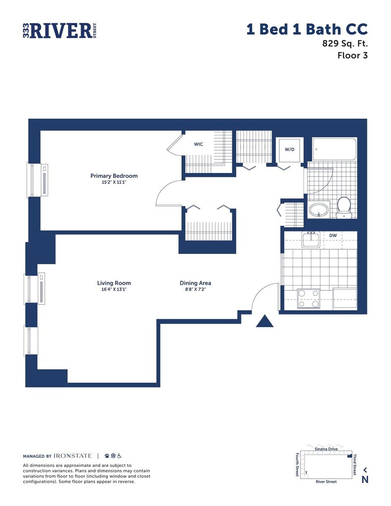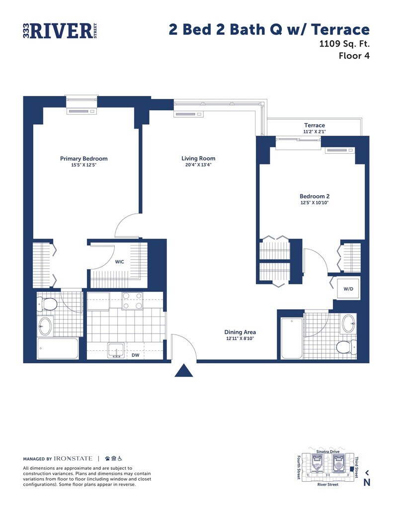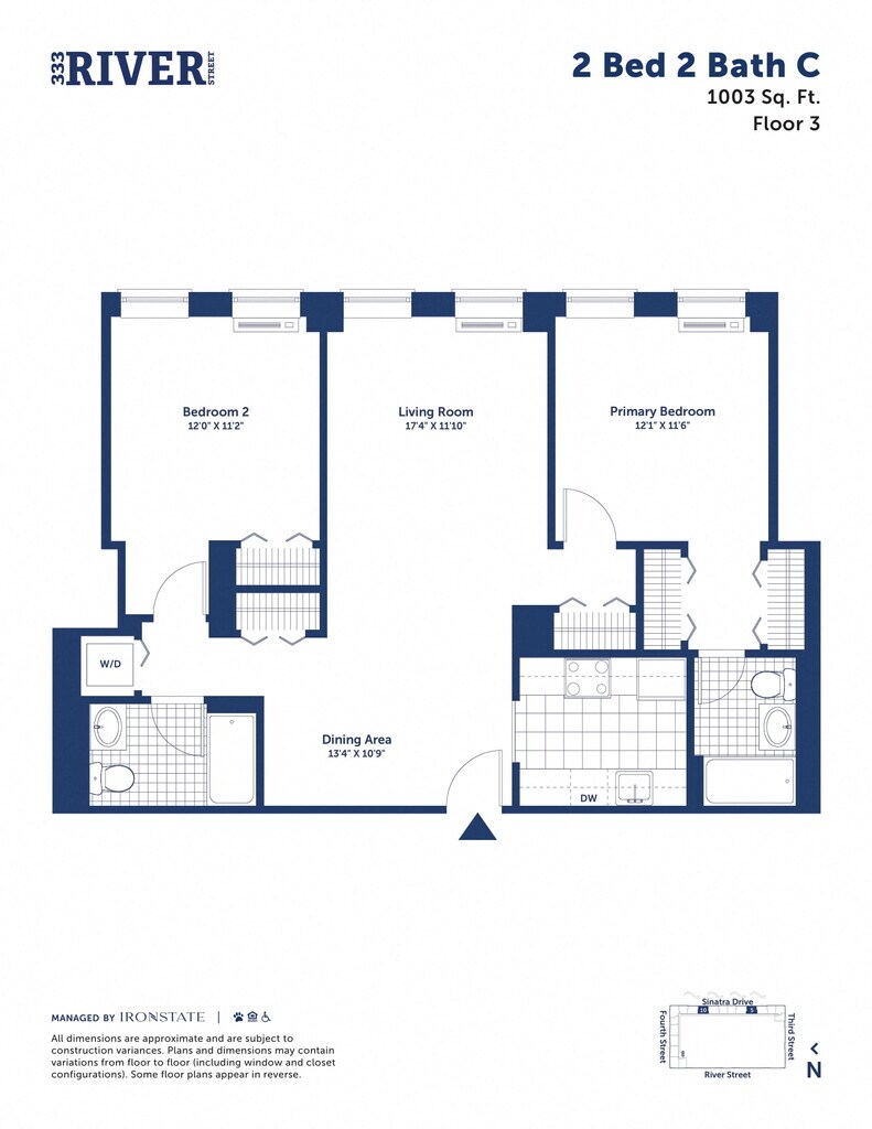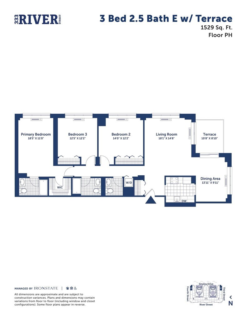 ¡Solo por tiempo limitado! ¡3 meses gratuitos con un contrato de arrendamiento de 15 meses! Bienvenido a 333 River Street. Esta dirección de Hoboken te coloca en el corazón de la elegancia junto al río, con vistas que barren el río, el horizonte y el puerto de Nueva York. Los residentes se benefician de una gran variedad de tiendas de venta al por menor en el lugar, un putting green, almacenaje para bicicletas y el acceso a Manhattan que está a solo unos pasos de distancia por medio del PATH, en autobús o transbordador.