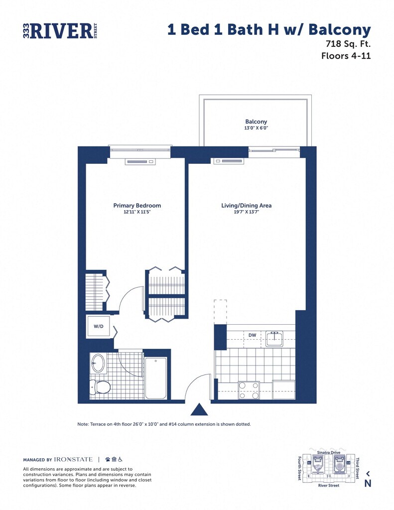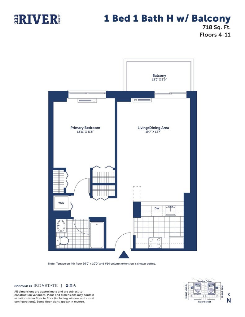 1 Bed 1 Bath J with Balcony - Plano 1 Unidad de apartamento: 925Modelo de apartamento: 1 Bed 1 Bath J with Balcony1 Dormitorio, 1 Baño, 718 sq ftDisponible Ahora![]()