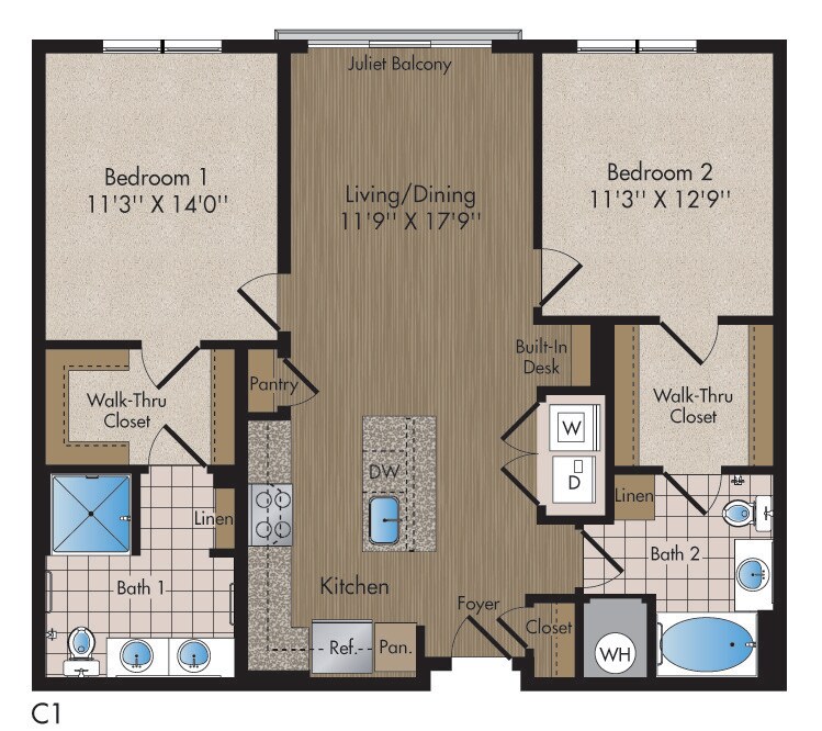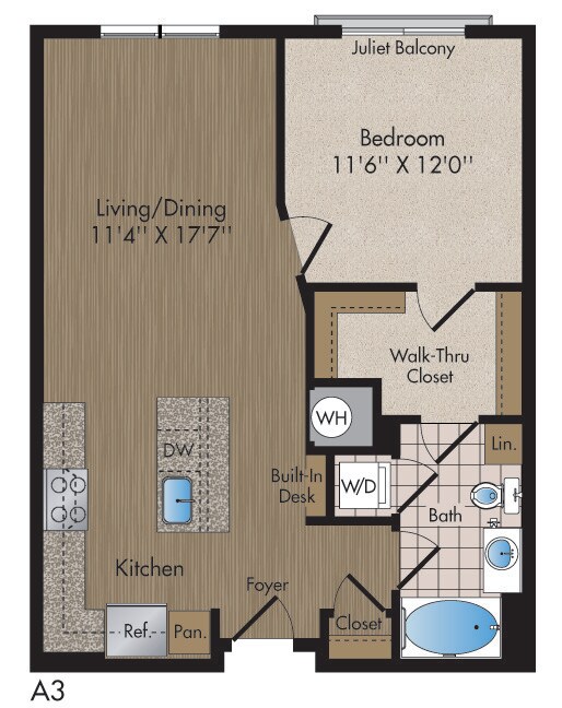 Estudio, 1 Baño, 528 pies²Disponible AhoraGalería del Modelo