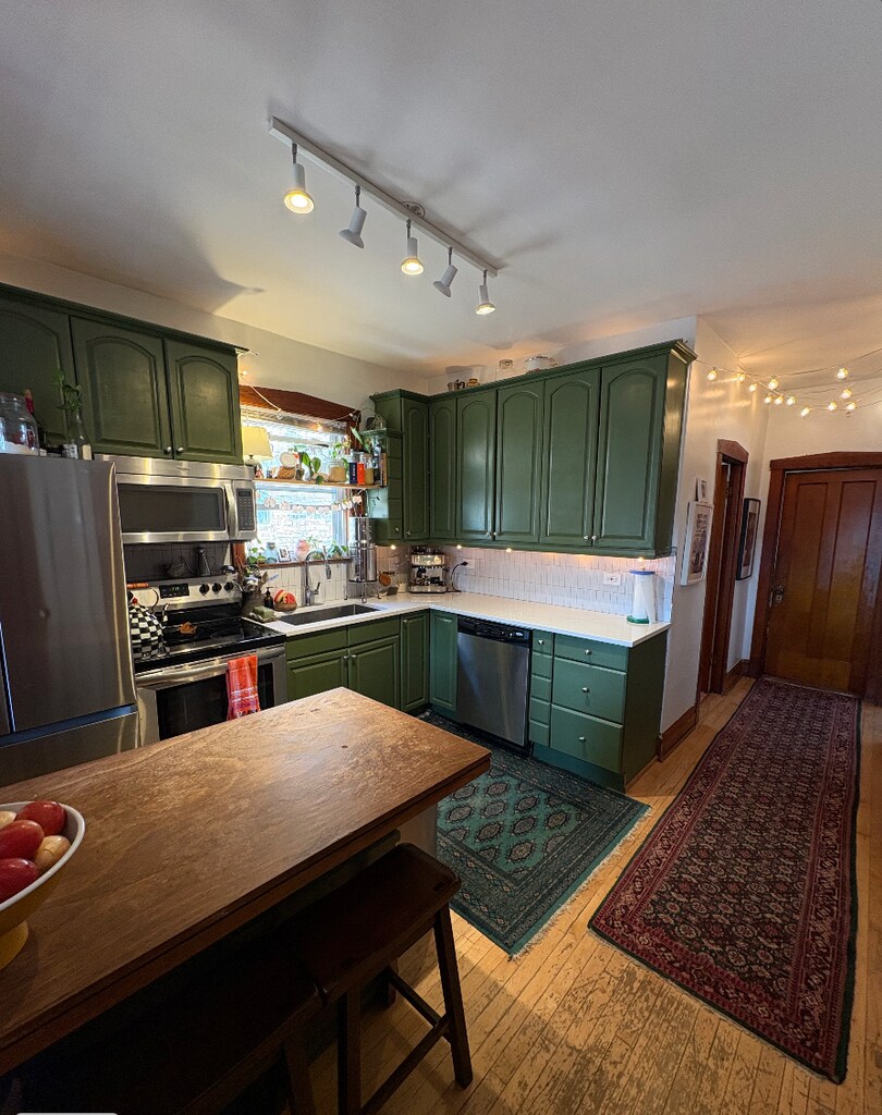 PARKING, WIFI, WATER, TRASH, WASHER AND DRYER IN UNIT, AND HOT TUB INCLUDED! This is a beautiful, classic Chicago-style 2nd floor apartment with a renovated kitchen and updated appliances. This apartment features two large bedrooms, an updated kitchen, a bright sunroom, a gated parking spot, a hot tub, in-unit laundry room with additional sink, and wifi/water/trash included! We are located in a safe area between two local middle schools and are easy to access through public transportation such as the blue line, Divvy bikes, and bus. We have fun neighborhood bars including Sleeping Village where local bands frequent for a fun night out, local sports bars such as Crawford's Food and Spirit, and the famous Avondale Bowl right down the road (only a 10 min walk)!