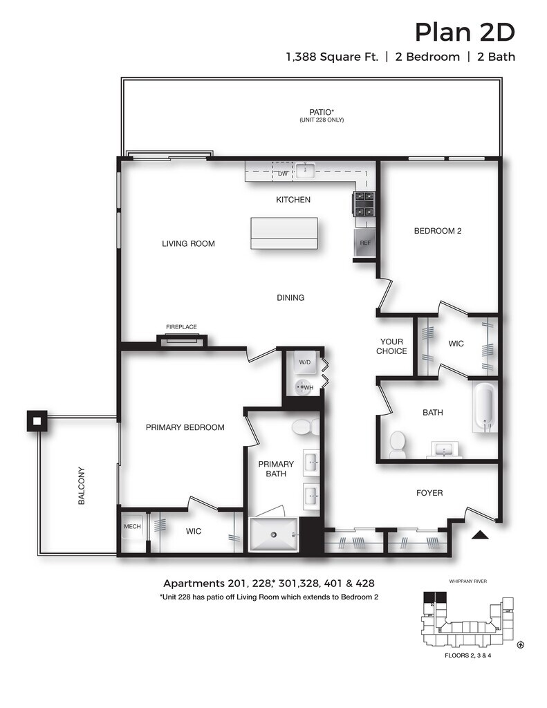 2D - Plano Unidad de apartamento: 201Modelo de apartamento: 2D$4,1952 Dormitorios, 2 Baños, 1388 sq ftDisponible AhoraPlano: 2C