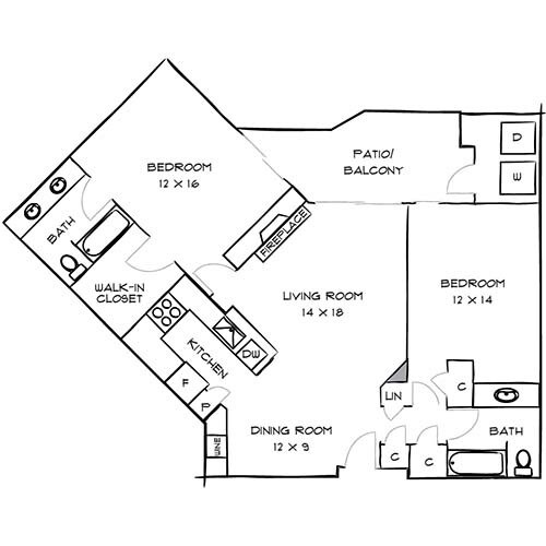 1 Dormitorio, 1 Baño, 750-875 pies²Disponible AhoraGalería del Modelo