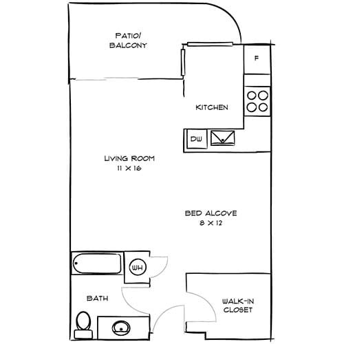 Estudio, 1 Baño, 530 pies²Disponible AhoraGalería del Modelo
