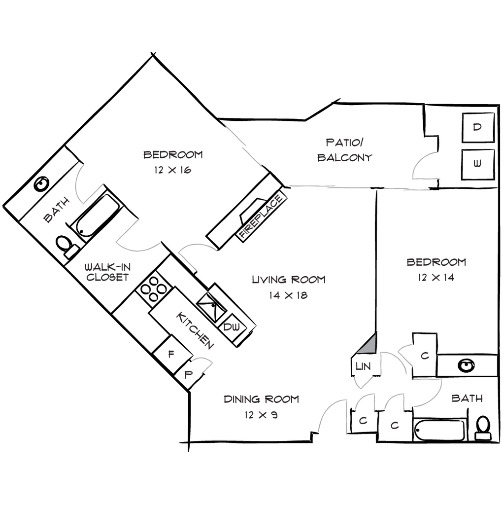 1 Dormitorio, 1 Baño, 750 pies²Disponible AhoraGalería del Modelo