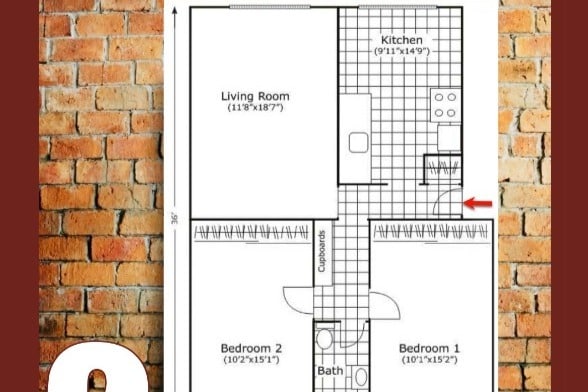 Modelo de apartamento: 2 Bedroom Model2 Dormitorios, 1 Baño, 940 sq ftDisponible AhoraPlanosFotos![]()