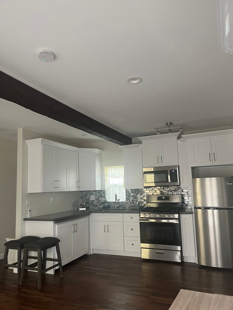 Newly built, fully furnished, small flat. It’s a separate building from the upstairs apartment. You'll be sharing patio and grill with the tenants downstairs. No pets.