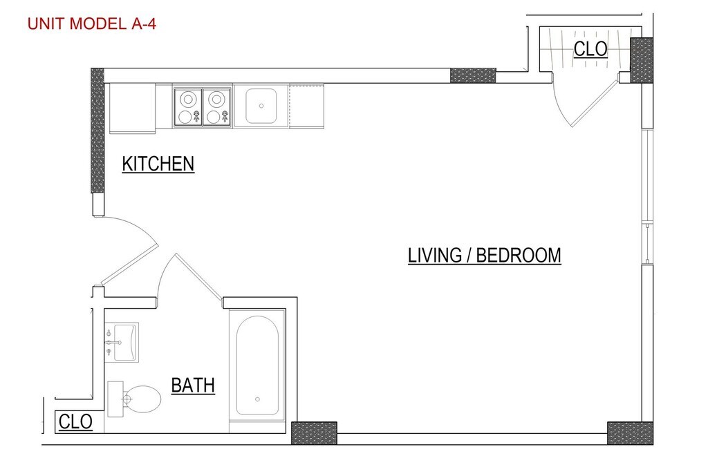 Modelo de apartamento: A-4Estudio, 1 Baño, 430 sq ftDisponible Ahora![]()