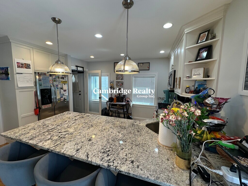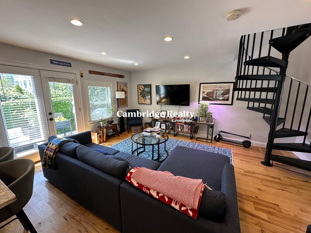 Two-story, two-bedroom, single family home outfitted with modern finishes and fixtures. This home was gutted down to the studs and rebuilt with all new plumbing, electric, windows, floors, etc. Central AC, recessed lighting, and hardwood flooring throughout. First floor features a stunning open layout kitchen/dining/living room with convenient half bath. Condo quality kitchen comes equipped with stainless steel appliances, marble countertops, breakfast bar, and pendant lighting. Spacious living room comes with French doors that lead out to a beautiful private patio- perfect for planting, grilling, and entertaining. Upstairs is a large marble bathroom with double-sink vanity and sunlit shower. Next to a hideaway washer/dryer is a full-sized bedroom with ample closet space. Primary bedroom offers high ceilings, a massive closet, and juliet balcony overlooking the back patio. Huge unfinished basement works perfectly as a private office, rec room, or home gym! Tucked away on a private residential street in East Cambridge, just two blocks from the Twin City Plaza shopping center. Easy access to McGrath Highway and Lechmere station.