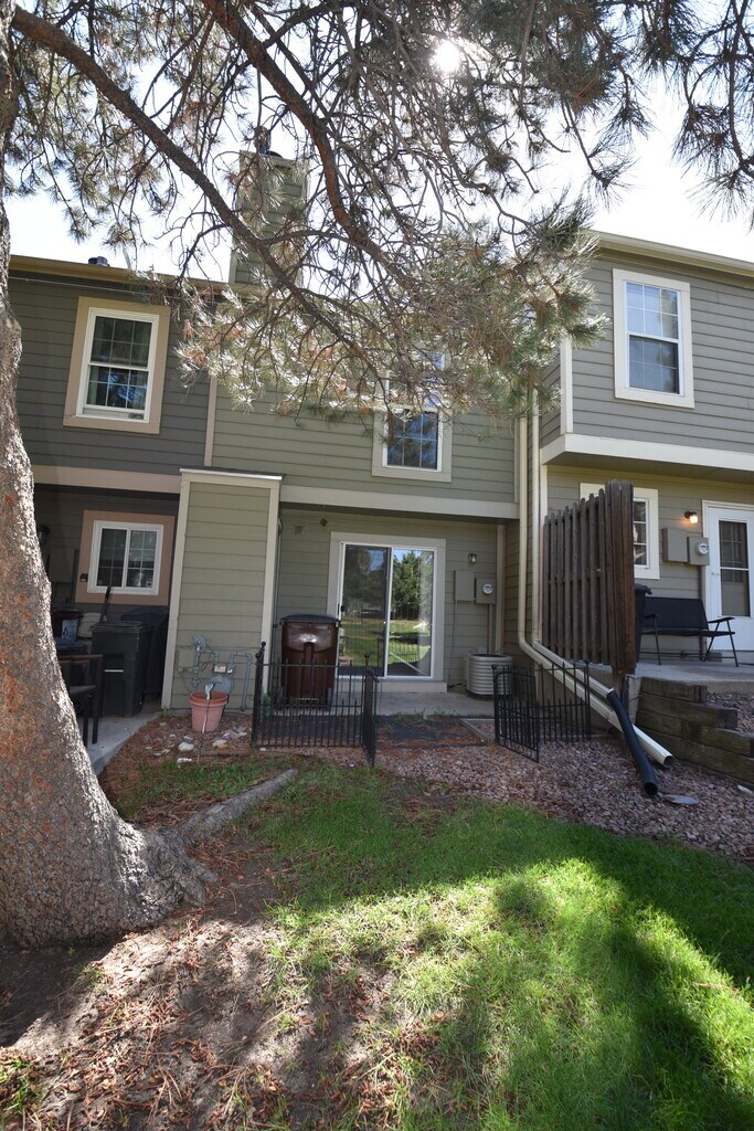 With almost 1700 square feet, there is plenty of space in this wonderful townhome. The kitchen includes tile flooring, refrigerator, and large pantry area. The living room and dining area have brand new carpet and paint, and also have a ceiling fan and gas fireplace. The master bedroom is complete with a vaulted ceiling, skylight, 2 closets, and attached bathroom. The 2nd bedroom has a large, full-wall closet, new paint, and 2 windows to allow for plenty of light. The unfinished basement is 551 square feet of possibilities, for extra expansion and tons of room for storage. Enjoy the back patio where you are just a hop, skip, and a jump to a path that takes you right into Palmer Park! This community is in a convenient location where you are surrounded by large, grassy areas and mature trees, and also a minute away from Academy Blvd. You can also enjoy the outdoor pool for relaxing in the summer sun. Other wonderful amenities include Air Conditioning, a storage shed, an assigned parking spot and many unmarked spots by the townhome, and washer dryer that stay. Dogs older than 1 year and under 25LBS are allowed with pet deposit and pet rent.