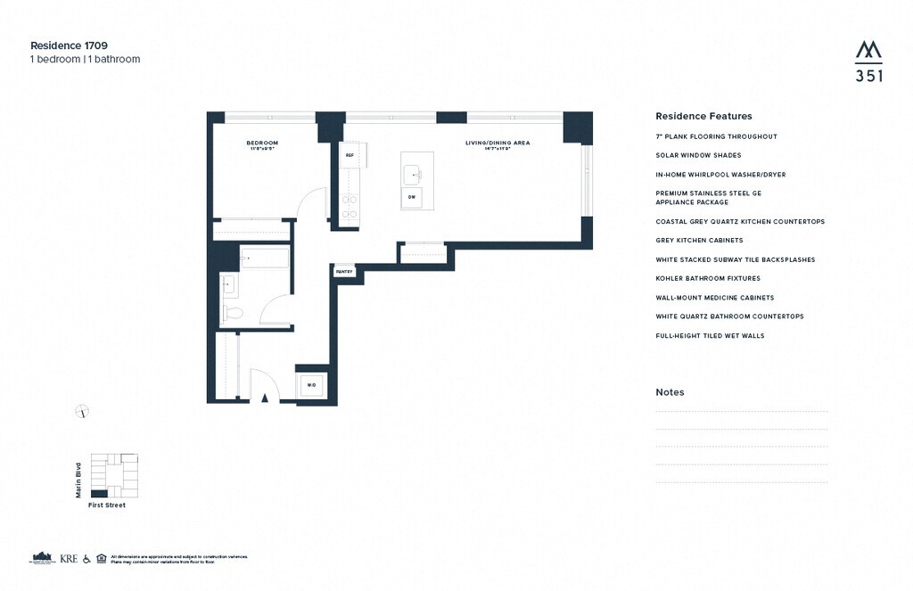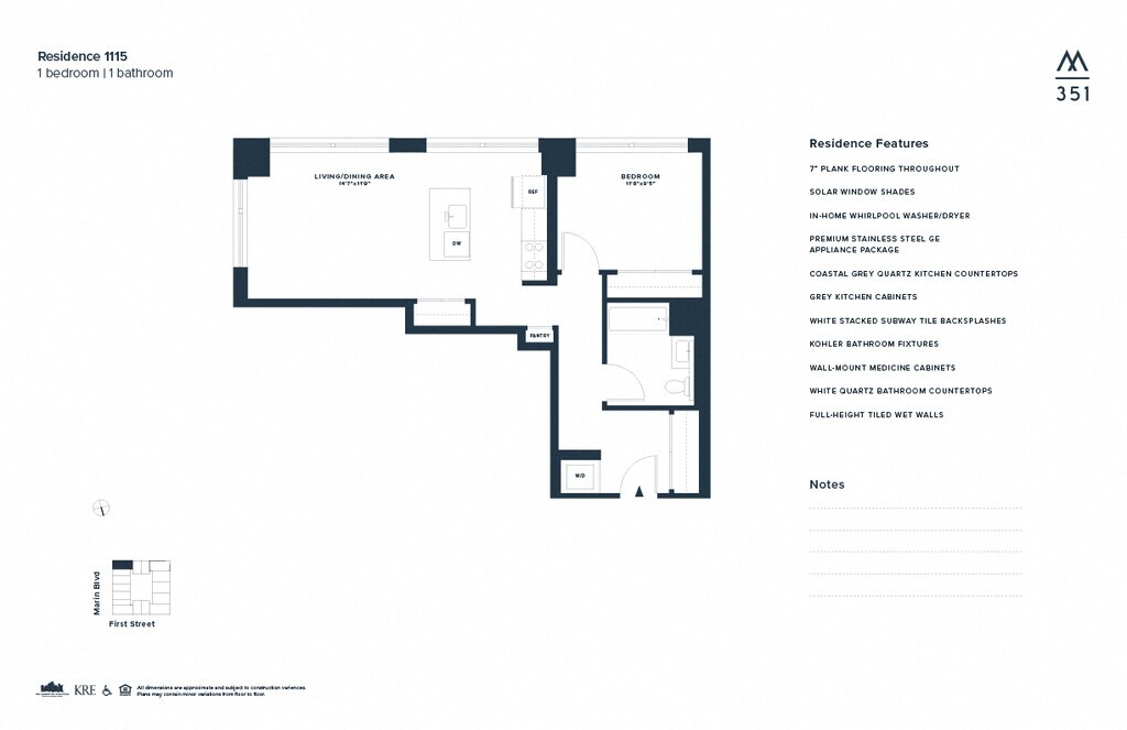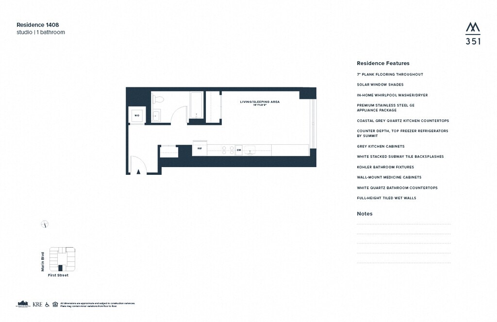 351 Marin se encuentra en el Barrio Downtown Jersey City y el código postal 07302 de Jersey City, NJ. Esta comunidad está gestionada profesionalmente por The KRE Group