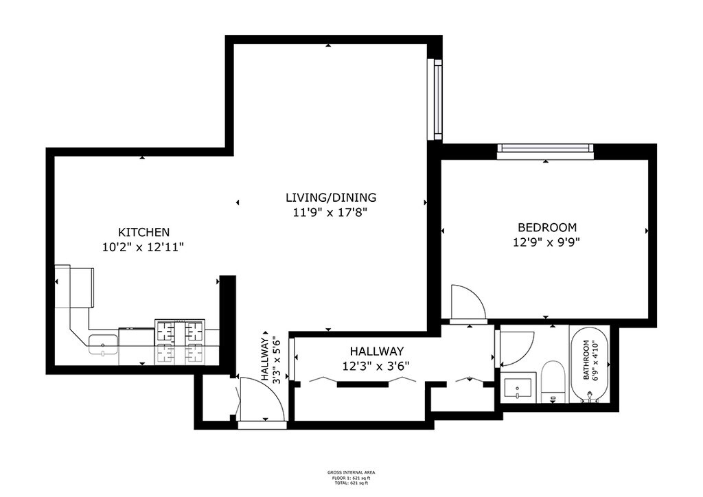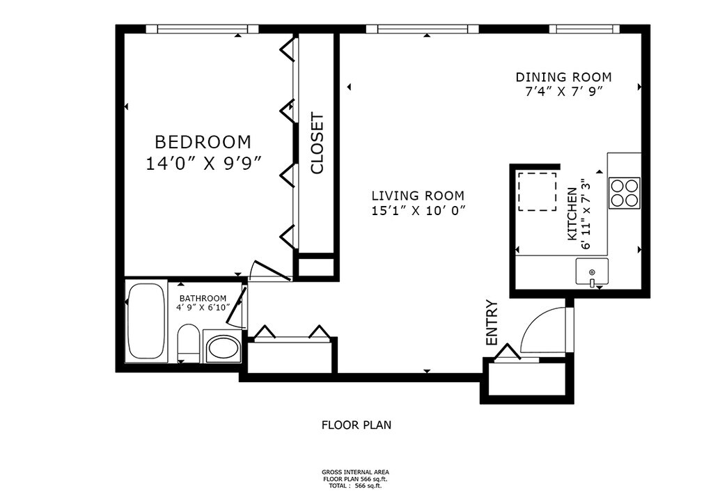 1 Dormitorio, 1 Baño, 525-615 pies²Disponible Mar 1Galería del Modelo