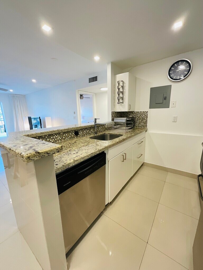 Condominio frente al mar en la tranquila comunidad cerrada de Eastern Shores. Pequeño edificio tranquilo. MUDANZA FÁCIL Un dormitorio, dos baños renovados. Amplio balcón con vista al canal.