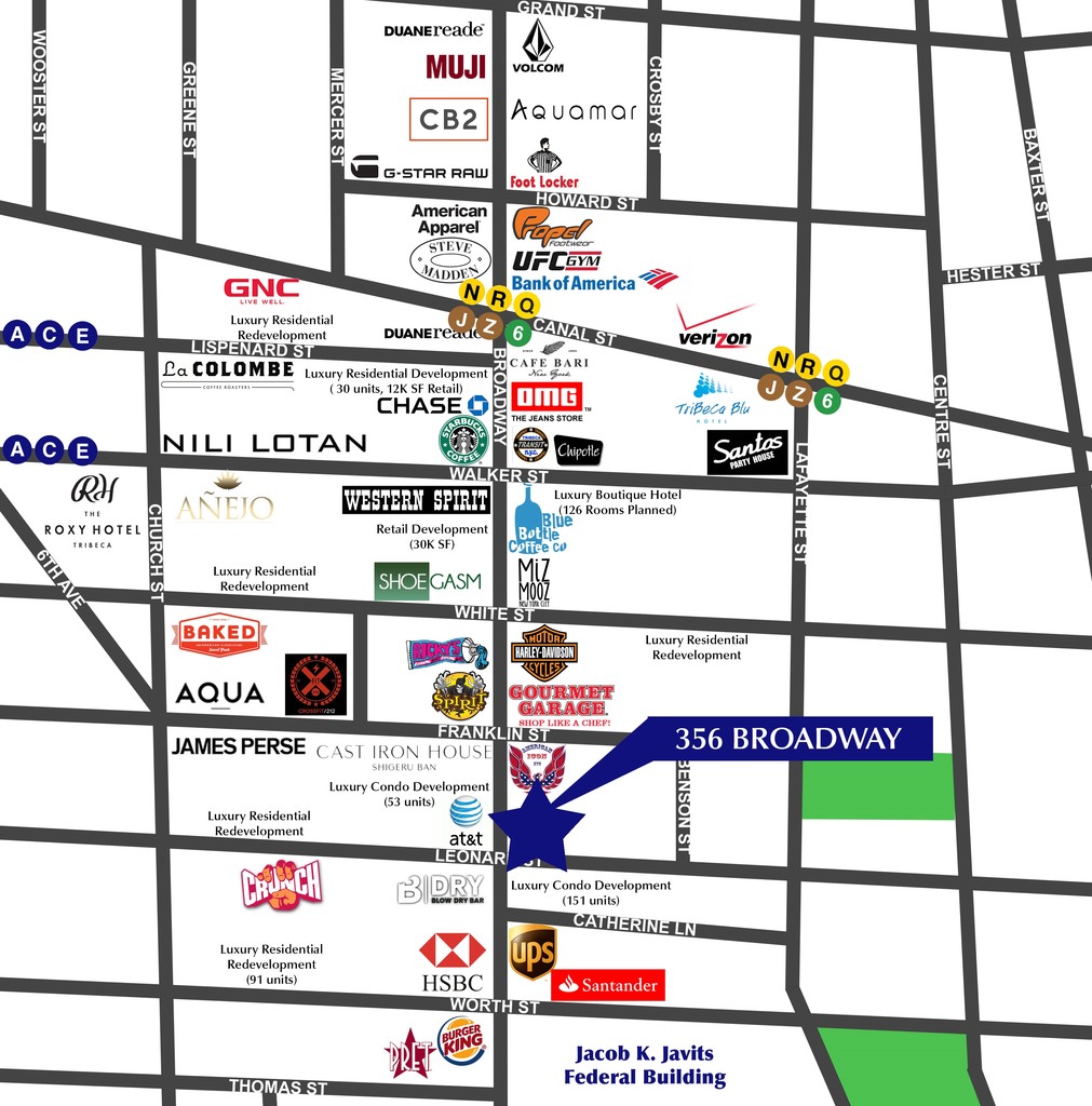 356 Broadway se encuentra en el Barrio Downtown Manhattan y el código postal 10013 de New York, NY.