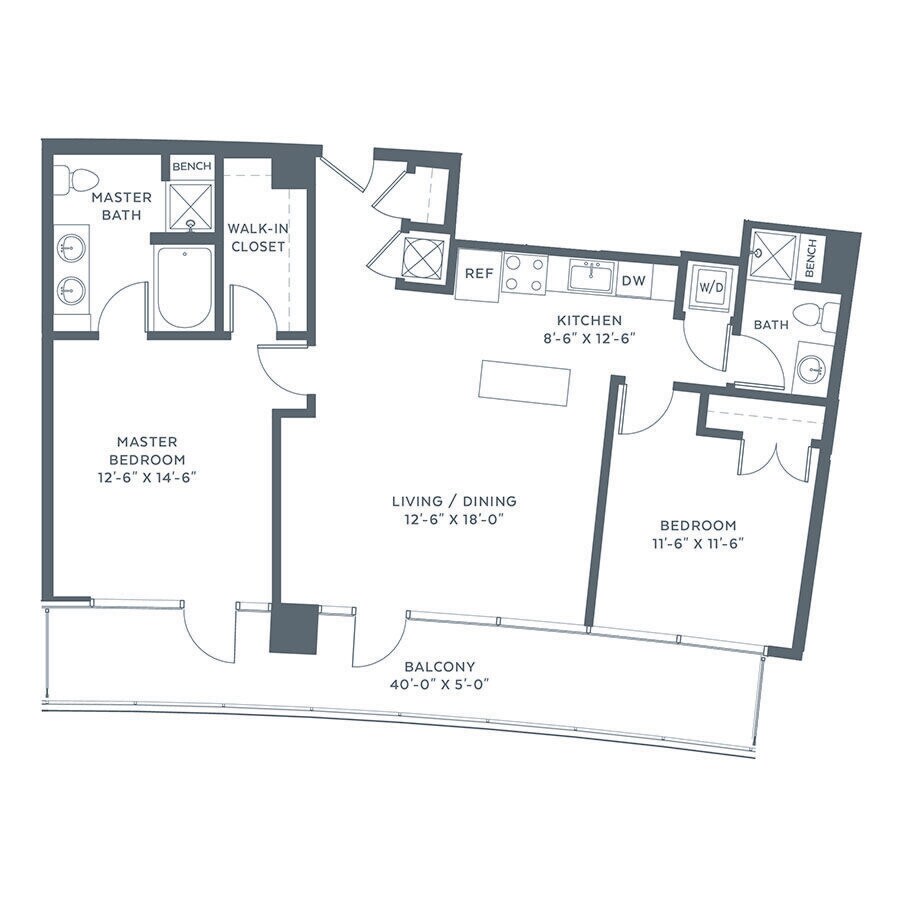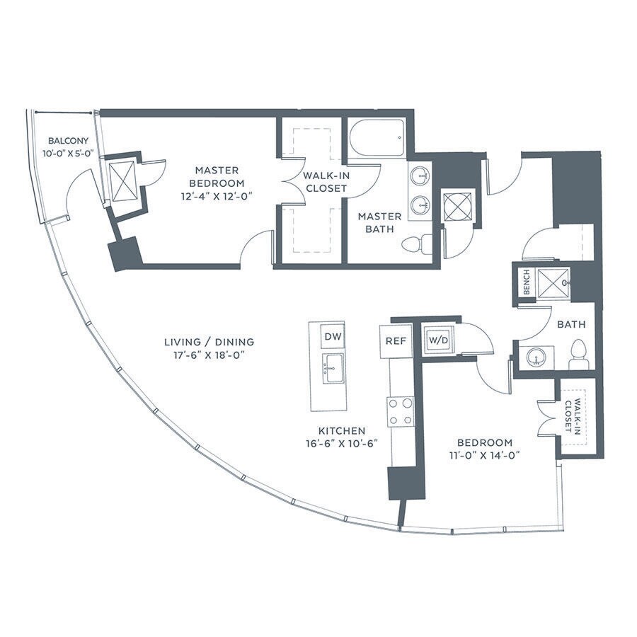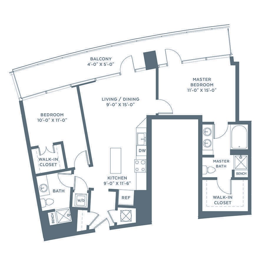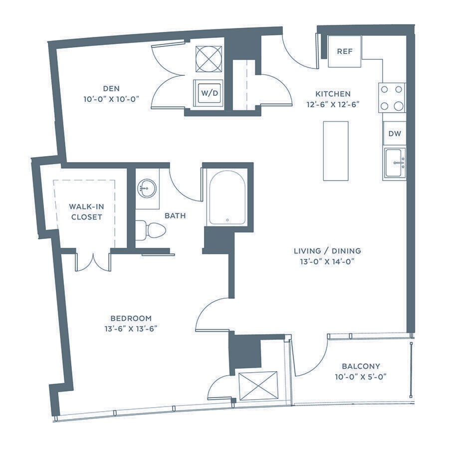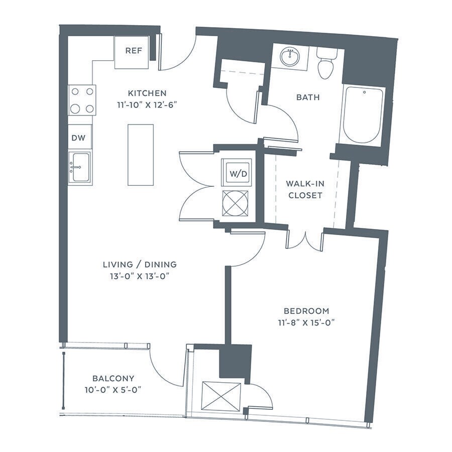 1 Dormitorio, 1 Baño, 823-844 pies²Disponible AhoraGalería del Modelo