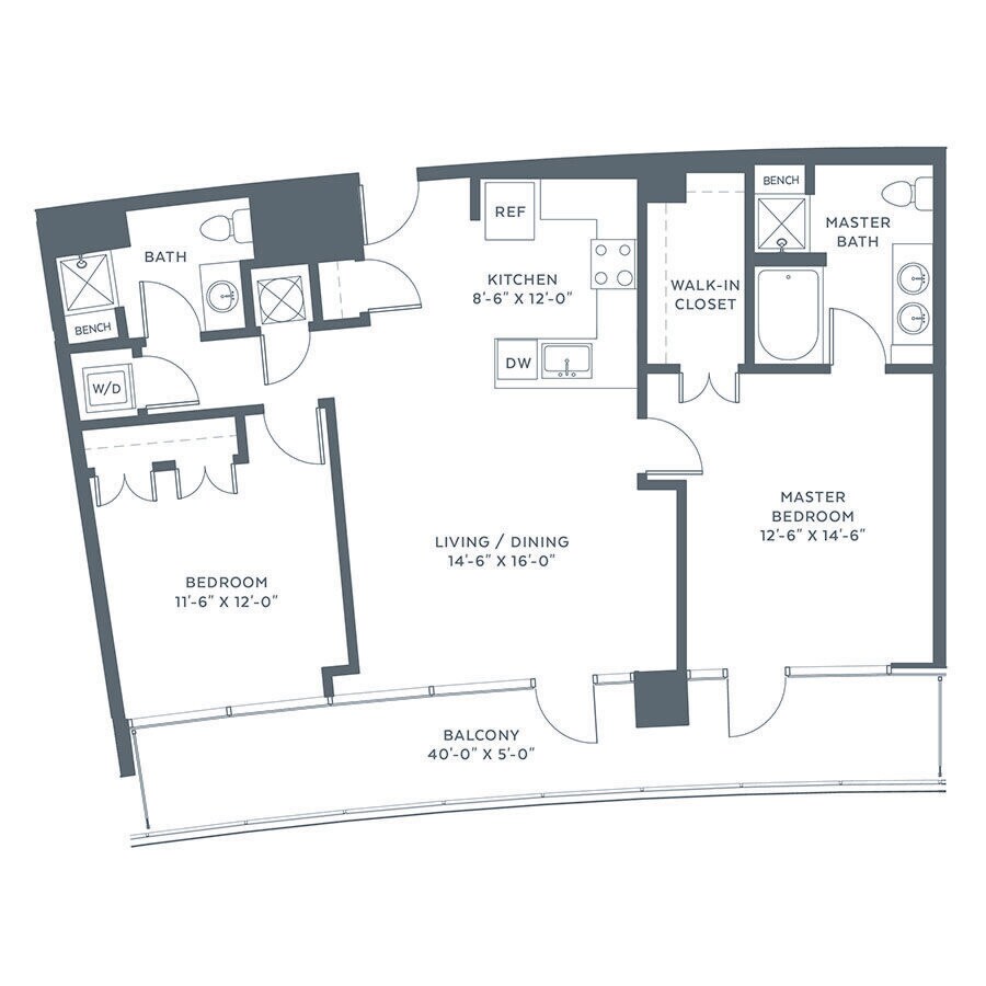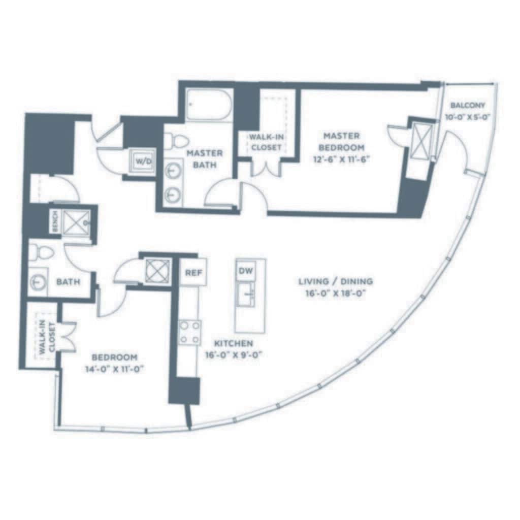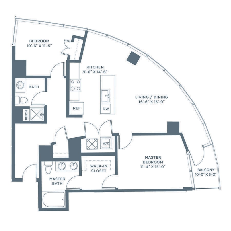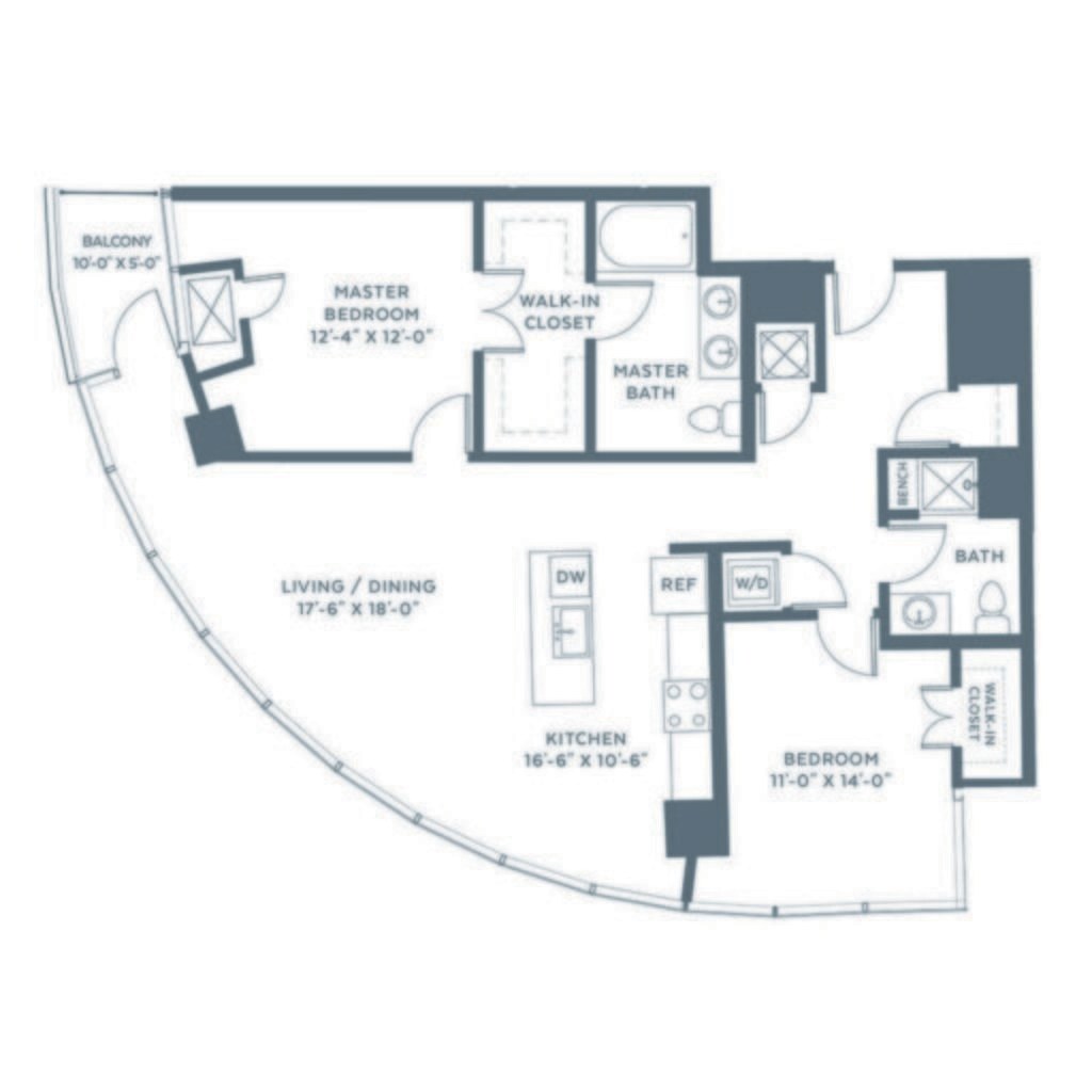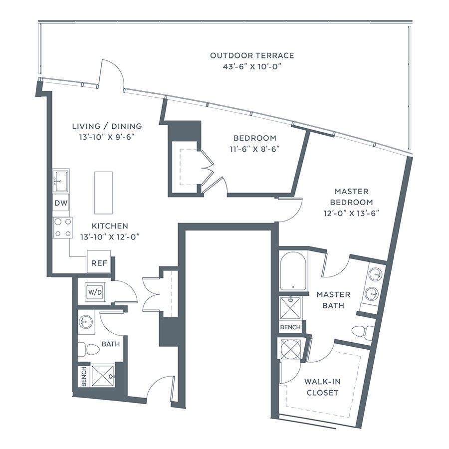 1 Dormitorio, 1 Baño, 823-844 pies²Disponible AhoraGalería del Modelo
