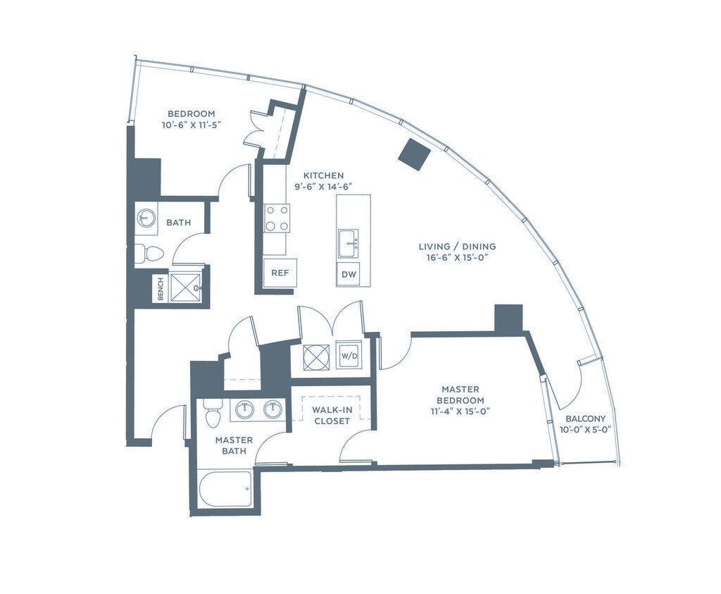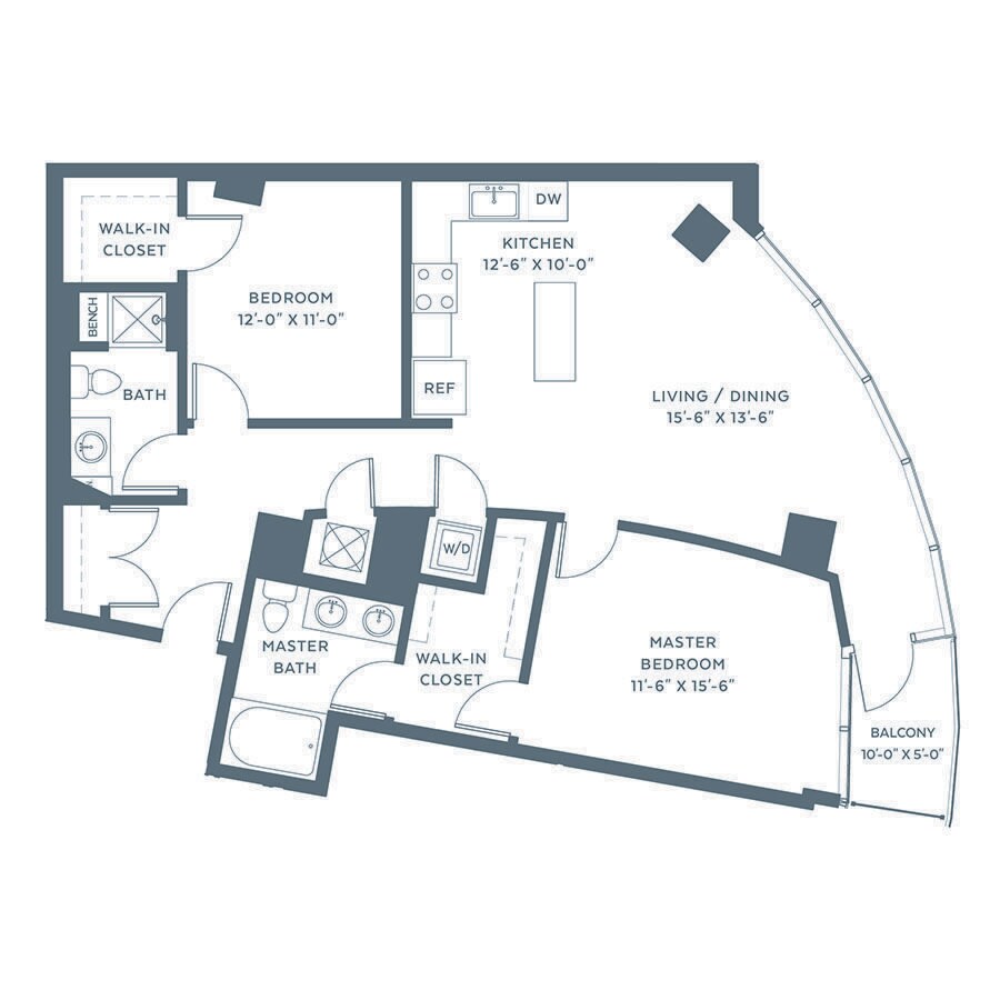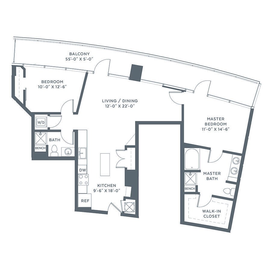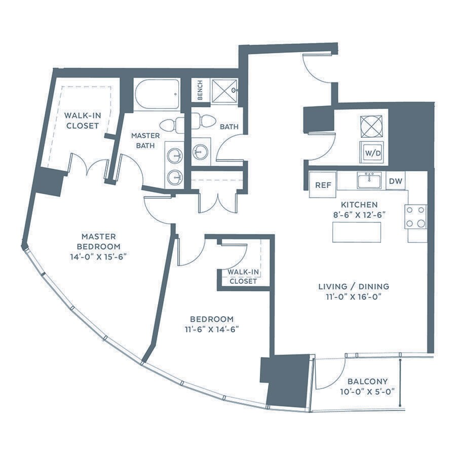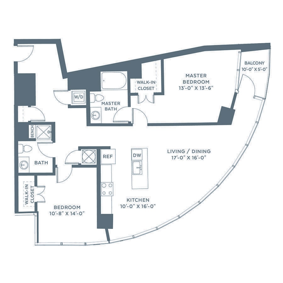 1 Dormitorio, 1 Baño, 823-844 pies²Disponible AhoraGalería del Modelo