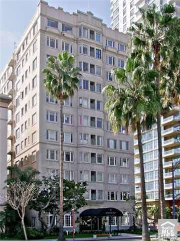 New York-style loft with magnificent Ocean and City views in a quiet, elegant historic building. Recently extensively remodeled (lighting, bath, kitchen). Period design to fit the character of this stylish, sophisticated landmark, including claw foot bathtub, marble-like tiles, high end gourmet kitchen with highest grade granite, cabinets, and unique floor tiles. Gleaming hardwood floors. Period-like fan and lighting. Efficient design to create a versatile room for bed, and office space with French door. Kitchen island with great ocean views, including Queen Mary, can accommodate 6-8 people. Spacious kitchen will satisfy the most discriminating chef. Take the elevator to the 12th floor where the common laundry room and the spacious solarium will provide breathtaking views. All utilities paid. Garage can be rented next door for around $100./mo. This is one of the most stylish unit for rent in Long Beach. Min. FICO score of 700 is required.