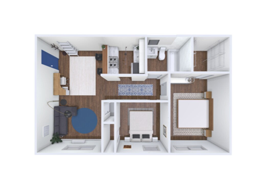 Unidad: 10 - Imagen 9 Unidad de apartamento: 9Modelo de apartamento: 2BR/1.0BA$8992 Dormitorios, 1 Baño, 800 sq ftDisponible Ahora