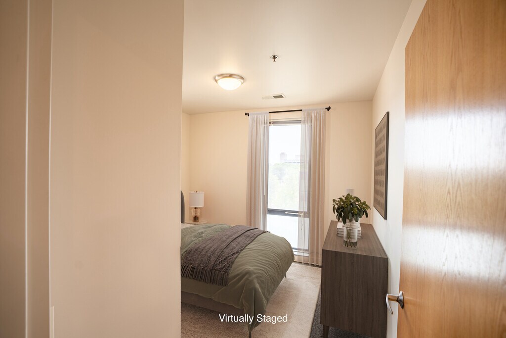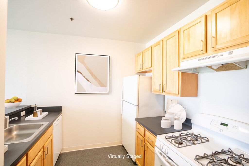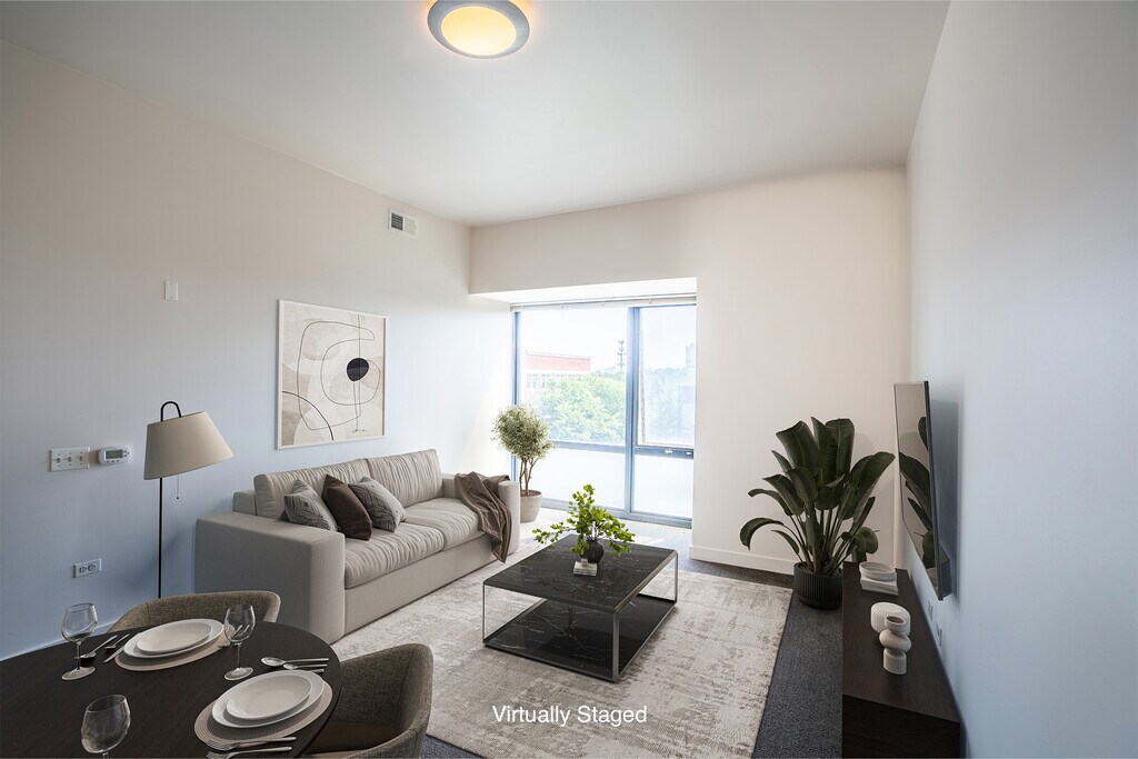These units have a modern stove, refrigerator and dishwasher included in the wonderful open concept kitchen with built-in breakfast bar. Multiple laundry facilities are available in the building. Picture windows provide bright light and fabulous views. Bring your furry family members - cats and dogs (under 40 lbs) are welcome. A parking space is included in the price. Extra cars or guests can park on the street and parking is free. DISTANCES: ** 0.2 miles to Illinois Institute of Technology (IIT) ** 0.2 miles to Starbucks ** 0.4 mile to Red Line Subway Station ** 0.6 miles to Chicago White Sox Baseball Field Being known as one of the most historic and diverse neighborhoods in Chicago, Bronzeville offers convenience and adventure at your fingertips: - Close to University Theater, Harper Theater, and Chicago Theater - Just minutes from IIT Campus - Surrounded by Bronzeville's finest dining and entertainment - Less than 5 miles to bustling Downtown Chicago - Steps from Guaranteed Rate Field - White Sox Baseball - A few miles from the Hyde Park Art Center and Museum of Science and Industry - Easy access to I-90/94 Enjoy beautiful Lake Michigan and excellent access to CTA Red and Green Lines, and a multitude of CTA bus options. With transportation and shopping within easy reach, you'll find your new home to be a great place to enjoy life.