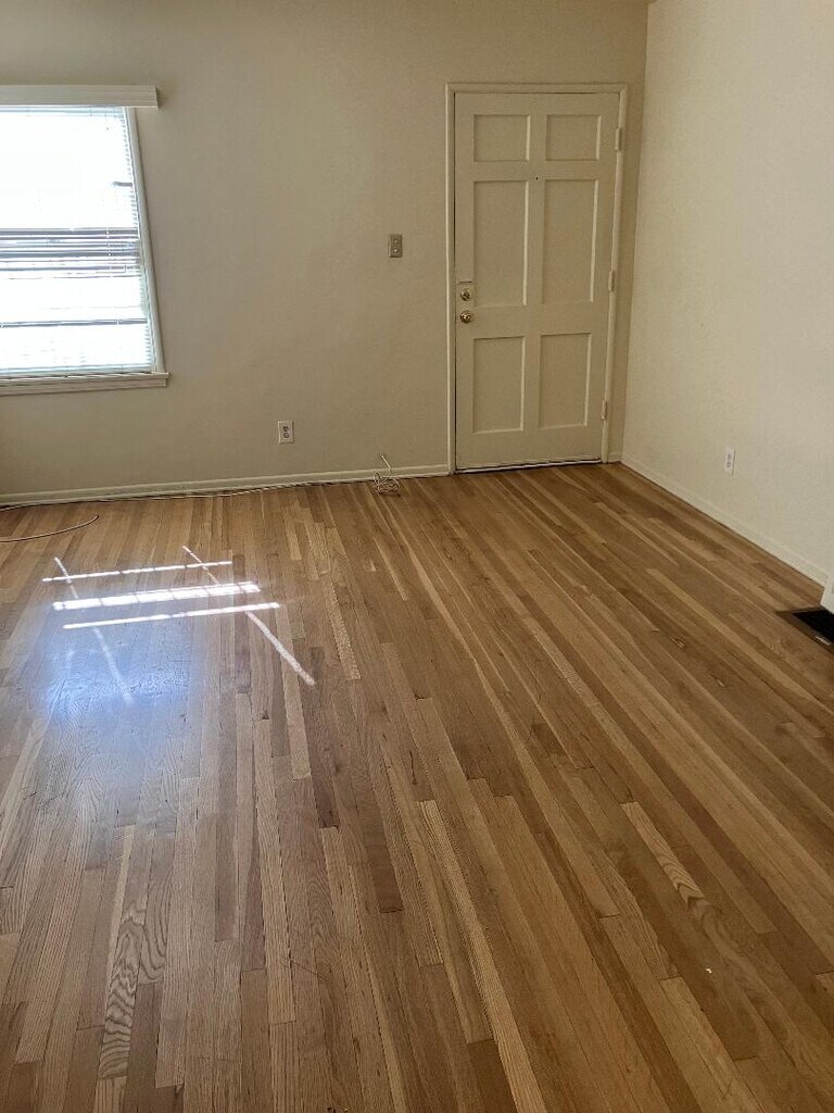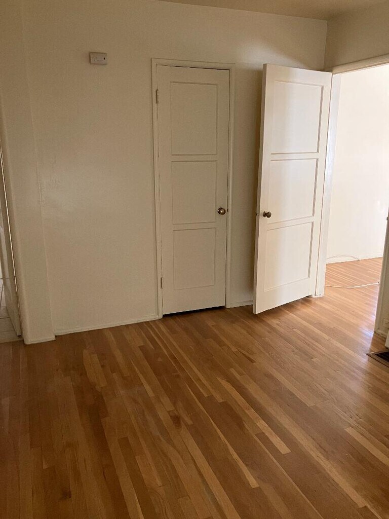 Freshly painted nice and clean, has hardwood floors in living room and bedroom. Great location apartment is close to the 10 freeway, transit station, churches and shopping centers. Move in ready ground floor apartment. Tenant to provide their own appliances. Tenant pays for gas and electric. City of Los Angeles section 8 are welcome. Application fee $55.00 No pets please.