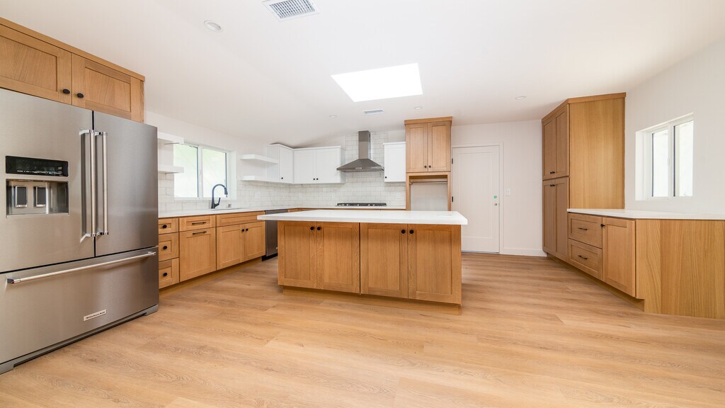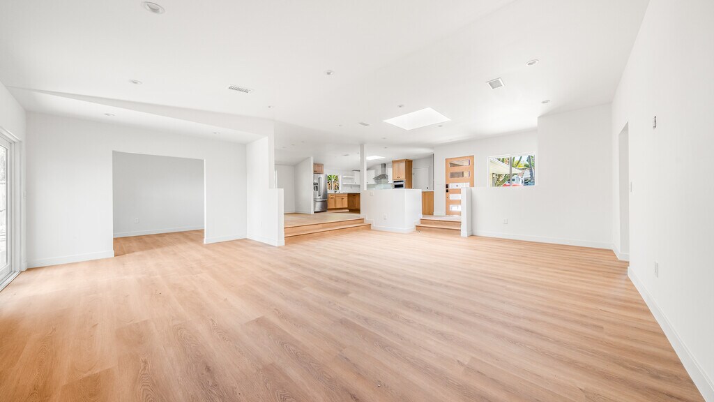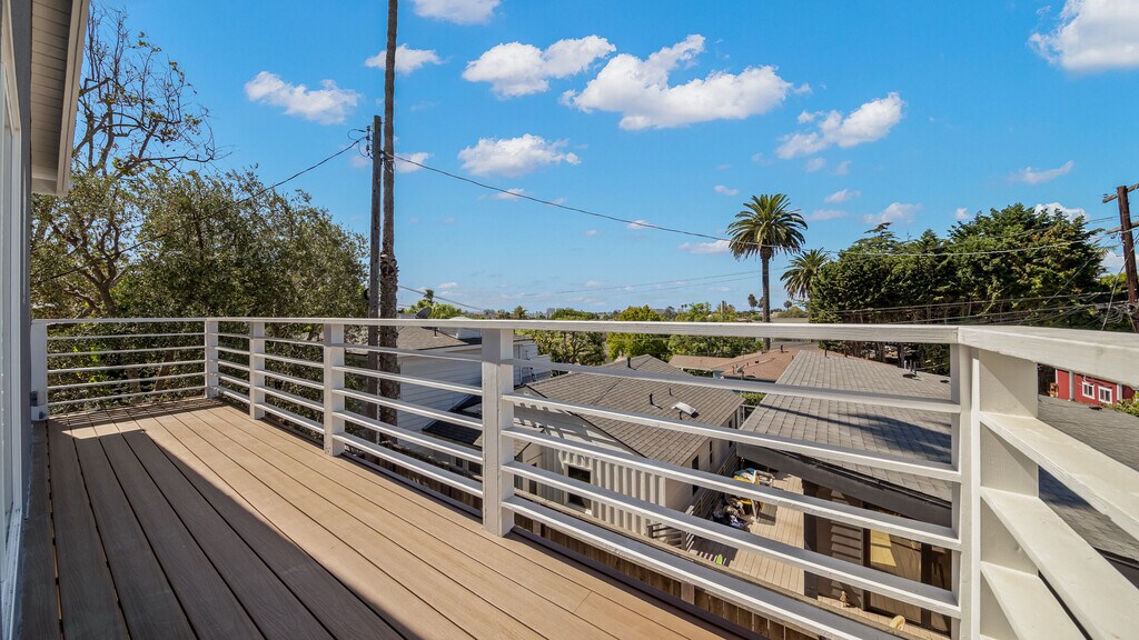 This stunning home on Mar Vista hill, never before rented, has been reimagined and thoroughly remodeled, with an open floor plan that welcomes you from the moment you enter. Its beautiful kitchen offers a spacious island, stainless-steel appliances, abundant storage and thoughtful finishes throughout. The home boasts two luxurious primary suites, both with generous walk-in closets, while the upstairs suite includes soaring high ceilings and a wrap-around private balcony with ocean views. Natural light floods the interior through beautiful skylight and recessed lighting, while the expansive backyard provides the perfect setting for entertaining. Brand new HVAC/plumbing/electrical/laundry, attached garage, substantial basement storage (~600ft, not included in living space) with additional customization options possible. Walk to the Mar Vista Farmers Market on Sundays, bike to the beach, have easy access to the westside and freeways, while enjoying the enviable blend of modern luxury, community living and a convenient location.