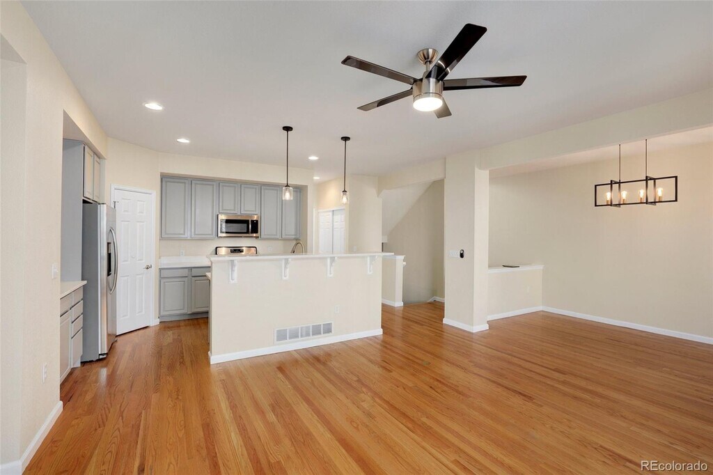 DTC/Denver de homes adosadas sin amueblar en alquiler. Las amplias, cómodas y renovadas de 2000 ft² casa adosada de 2 pisos con balcón, cerca privada in-no maintenance-backyard y un garaje adjunto para 2 automóviles con mucho espacio de almacenaje. 4 habitaciones + Office y 4 baños. Hermosa cocina moderna con nuevas encimeras de cuarzo, electrodomésticos de acero inoxidable nuevos, y una estufa a gas. Los techos altos, hermosos pisos de vinilo de lujo y de una increíble luz natural. Sala de estar con chimenea a gas con vista a la terraza. Aire acondicionado/calefacción centralizado. Excelente ubicación, a 5 minutos del Denver Tech Center (DTC) y Cherry Creek State Park, con fácil acceso a la autopista I-225, I-25 y estaciones de tren ligero. Apartamento con lavadora y secadora. Sótano con salida propia suite con un baño privado. No se admiten menores o sobre este apartamento. $3300/month. El alquiler incluye la recolección de residuos & reciclar. Contrato de arrendamiento de 12 meses. Revisión de antecedentes, verificación de crédito y se requiere una prueba de ingresos. Depósito de seguridad de & primer mes de alquiler al momento de firmar el contrato de arrendamiento. Disponible del 1 de junio de 2022. Plano de planta es perfecta para la familia o de otras opciones de vivienda.