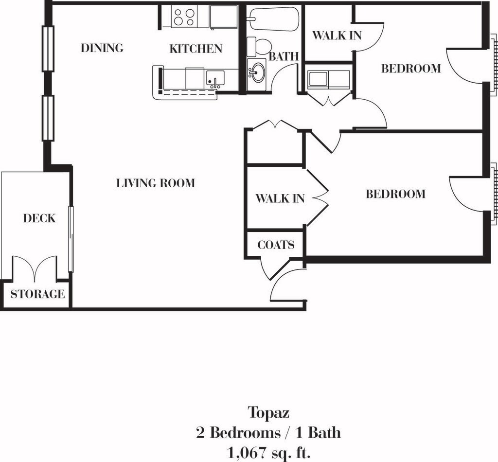 2 Dormitorios, 1 Baño, 1067 pies²Disponible AhoraGalería del Modelo