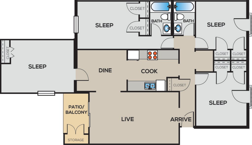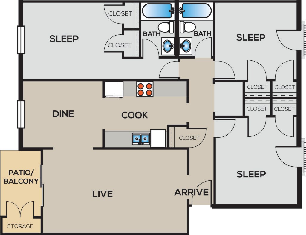 3 Bed | 2 Bath - Plano 3 3 Bed | 2 Bath