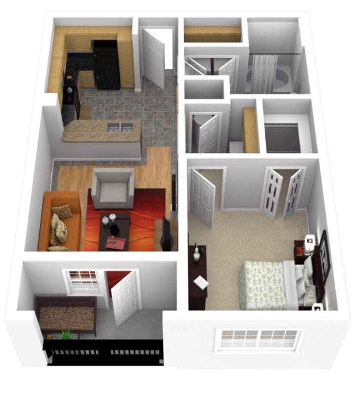 1 Dormitorio, 1 Baño, 981 pies²Disponible AhoraGalería del Modelo