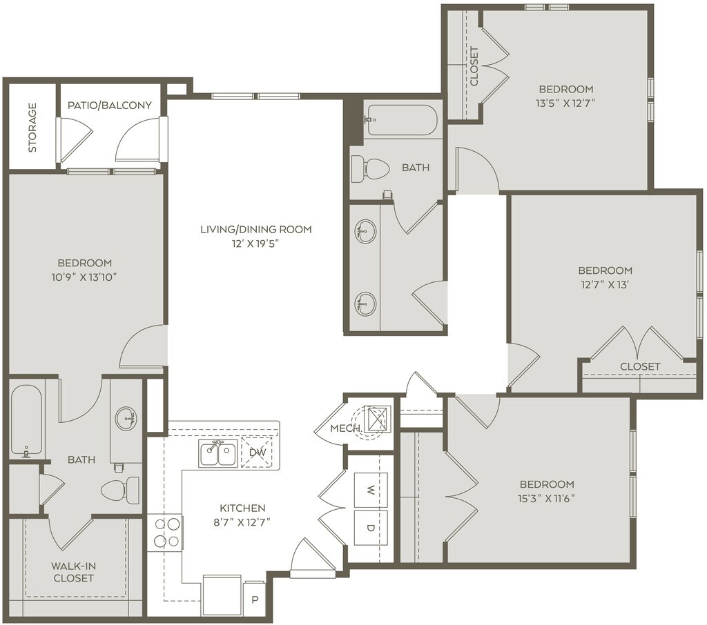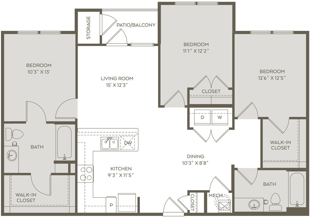 Modelo de apartamento: B1$1,1992 Dormitorios, 2 Baños, 919 sq ftDisponible Ahora![]()