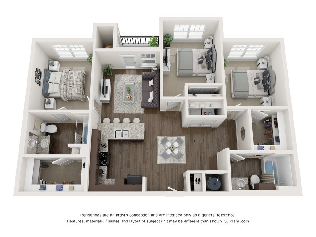 3 Dormitorios, 2 Baños, 1162 pies²Disponible AhoraGalería del Modelo