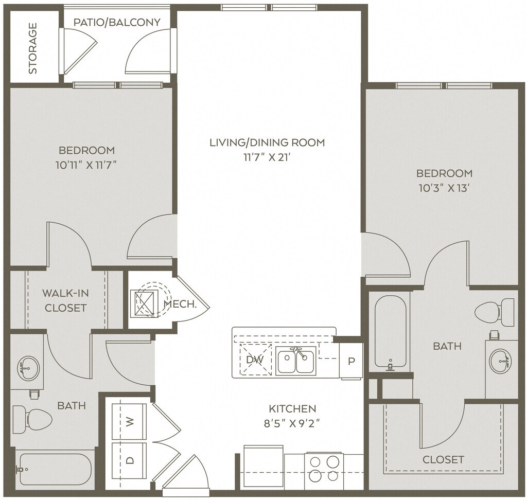 Modelo de apartamento: B1$9492 Dormitorios, 2 Baños, 919 sq ftDisponible AhoraPlanos3D Tours![]()
