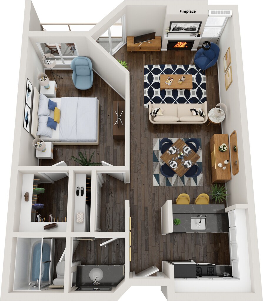 1 Dormitorio, 1 Baño, 735 pies²Disponible AhoraGalería del Modelo