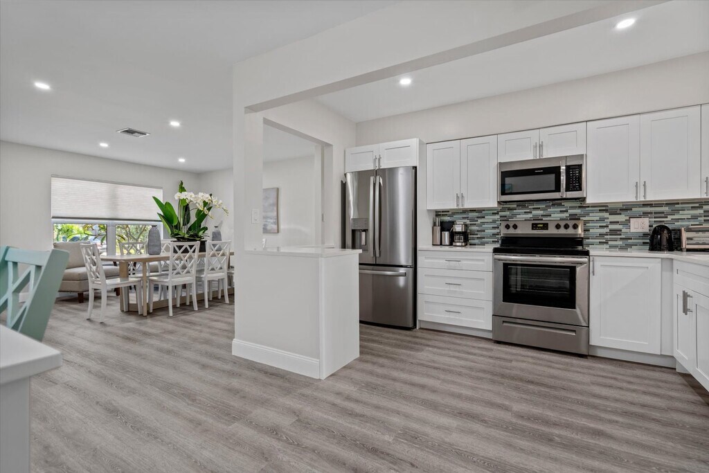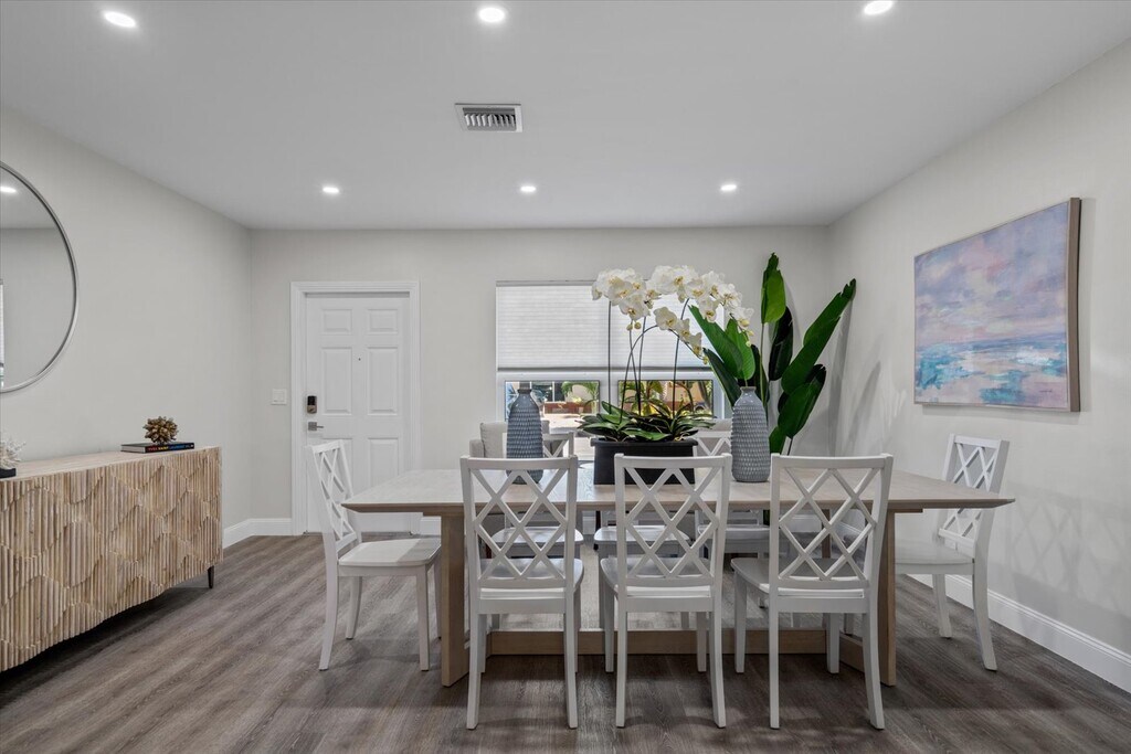 Recently renovated, 3 bed, 2 bathroom house with jacuzzi on a quiet street in the heart of Ft. Lauderdale. Comfortably sleeps 8 adults (3 queen size beds plus a queen size sleeper sofa.) Tastefully decorated with beautiful furnishings, new appliances, Smart TVs in every bedroom, fully equipped kitchen, dining room & patio tables with seating for 8, and a beautiful backyard. Minutes from the beach, great restaurants, and shopping centers. KEY FEATURES OF THIS HOME -Sleeping for 8 people. (3 Queen size beds in 3 bedrooms. Each bed accommodates 2 adults. Plus, a large sectional pull out sofa that sleeps 2 in the Family room). -Bright and Airy. Large windows and French Doors give you a pleasant, relaxing view to the backyard. -Fully furnished and nice amenities! KITCHEN Fully equipped kitchen (dishes, glasses, silver wear, pots & pans, conventional coffee maker ). Conveniently located in the center of the home with open access to formal dining room, kitchenette, and family room. -Stove -Conventional Oven -Microwave Oven -Toaster Oven -Refrigerator and Freezer with Ice Maker -Dishwasher -Granite Counter Top DINING ROOM AND FORMAL LIVING ROOM -Large dining room table with 8 chairs -Beautiful, wood, artistic credenza -2 accent chairs with table DINETTE -Modern, wide table with 3 stools FAMILY ROOM -65 inch smart TV with Amazon Fire Stick, Direct TV, and access to NetFlix, Disney Plus, Hulu and more. -Extra large L shaped sectional sofa with seating for 8 and pull out bed for 2 -Counter Height Seating with 2 stools -Desk with a window view to the backyard -Separate AC just for the Family room -Direct access to the jacuzzi from 1 side of room and direct access to a screened in porch via French doors on the other side of room. BEDROOM 1 -Cozy room with Queen size bed and private full bathroom (Shower, vanity, toilet) -Spacious walk-in closet -Black out window shades -Night stands with drawers on each side of bed & plenty of outlets to charge devices -Smart TV with Amazon Fire Stick, Direct TV Stream, and access to NetFlix, Disney Plus, Hulu and more. -Dresser BEDROOM 2 -Large room with Queen size bed and direct access to a shared, full bathroom (Bath tub with shower, vanity, toilet) -Spacious walk-in closet -Black Out window shades -Night stands with drawers on each side of bed & plenty of outlets to charge devices -Smart TV with Amazon Fire Stick, Direct TV Stream, and access to NetFlix, Disney Plus, Hulu and more. -Large dresser BEDROOM 3 -Cozy room with Queen size bed and shared full bathroom (bath tub with shower, vanity, toilet) -Walk-in closet -Black Out window shades -Night stands with drawers on each side of bed & plenty of outlets to charge devices -Smart TV with Amazon Fire Stick, Direct TV Stream, and access to NetFlix, Disney Plus, Hulu and more. WALK-IN LAUNDRY ROOM -Full Size Washer -Full Size Dryer SCREENED IN PORCH -Couch with 2 accent chairs and small coffee table PATIO -Picnic table for 8 with a large umbrella for shade -BBQ Grill BACK YARD -Jacuzzi with room for 4 adults -Fire Pit with 4 Adirondack chairs -Corn Hole Game on Astro Turf -2 Lounge Chairs under umbrella PARKING Spacious driveway comfortably accommodates Three (3) full Size vehicles. Please Note: There Is no street parking allowed. Guest access Guests shall have exclusive access to the entire property.