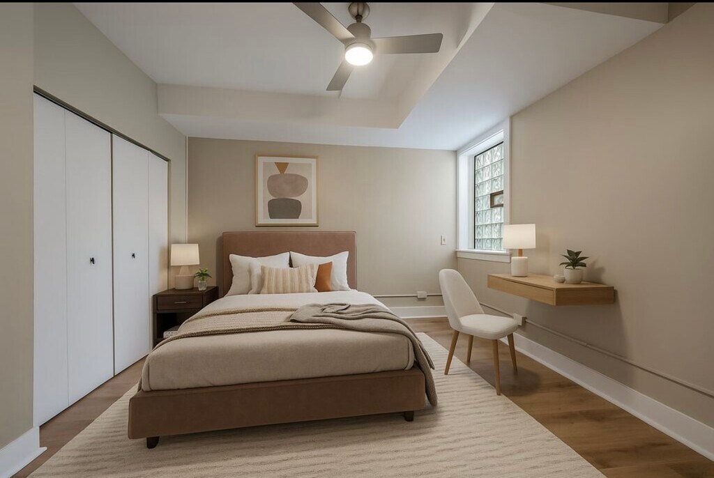 Beautifully remodeled garden apartment with central heat and air. This spacious 2-bedroom, 1-bath home features a brand-new kitchen with quartz countertops and new stainless steel appliances, including a dishwasher, refrigerator, gas stove, and microwave. The unit has been freshly painted and includes beautiful new luxury vinyl flooring throughout. The bathroom offers a tub, pedestal sink, porcelain tile, and modern fixtures. The large living room features 9-foot ceilings and is bright and sunny. The building offers a shared coin-operated laundry room. Walk to brown line (1/2 mile). North Park University (1.5miles) or Northeastern Ill. University (1.3miles). Tenant pays electric and gas (approx $100/mo total) Pet policy is negotiable - case by case. There is a pet fee of $150/per pet. One time management fee of $600.