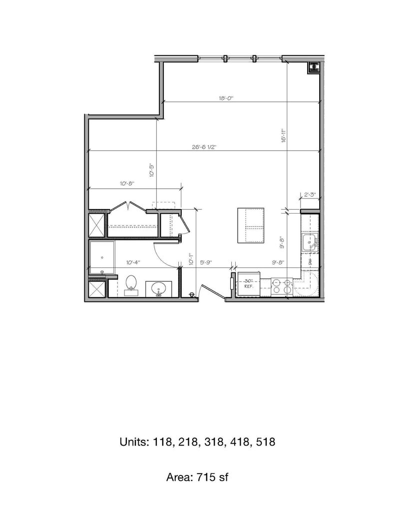 Estudio, 1 Baño, 715 pies²Disponible AhoraGalería del Modelo