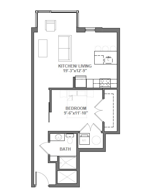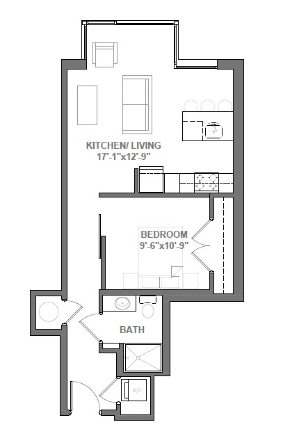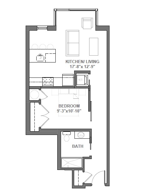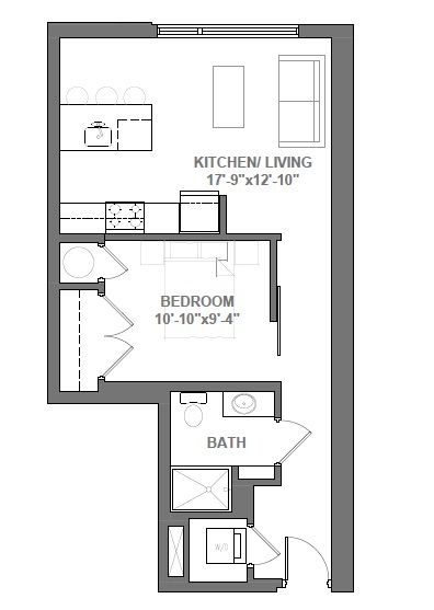 1 Dormitorio, 1 Baño, 500 pies²Disponible AhoraGalería del Modelo