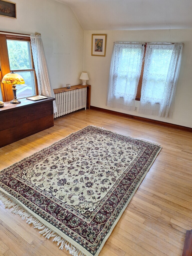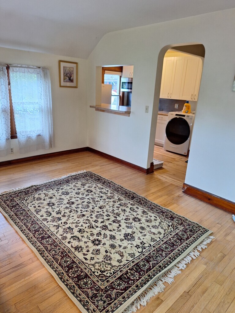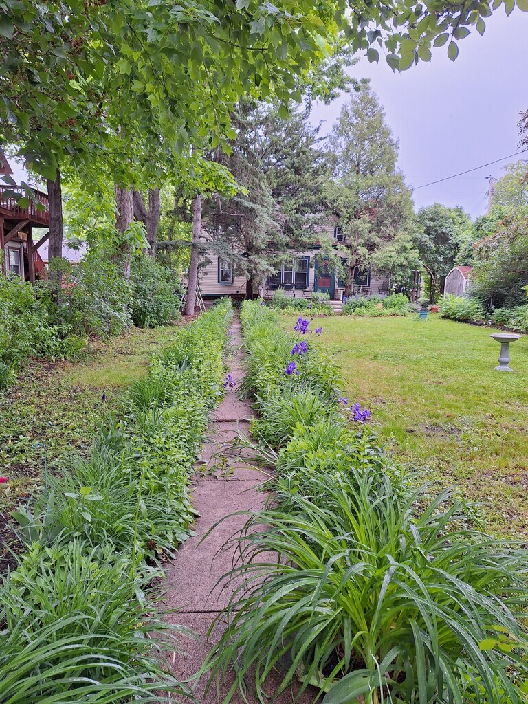 Bright, airy, cozy upper unit of owner-occupied duplex near bluffs on St. Paul's historic West Side. ALL utilities included in rent, including internet! Renovated kitchen (new cabinets, all new appliances, including induction range, microwave, fridge, combo washer/dryer). Pass through interior kitchen window with breakfast bar to living room with windows on 3 sides: east, west, north. Hardwood floors in living room, bedroom, kitchen. Deep clawfoot soaking tub. Both handheld and stand-up shower enclosure. South-facing skylights in bedroom and west-facing window. Large, well-lit closet. Large garden on double lot. Solar panels on roof. Separate parking pad available at $25 per month. Cat OK, kitty ladder to porch roof to ground from 2nd floor window for indoor/outdoor cat. Cat rent $30/month. $62 application fee for Tenant Check MN background check (rental history, credit and criminal check).