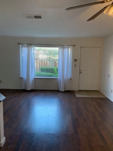 Two bedrooms townhouse apartment plus an office/guest/ computer room in a 4plex in North Park. Downstairs is the living room, dining area, 1/2 bath, office room kitchen with patio. Upstairs are 2 master suites with their own walk in closets and bathrooms. A washing machine and dryer is located in a closet between the master bedrooms. Two parking spaces are provided in the back of the building in our parking lot.