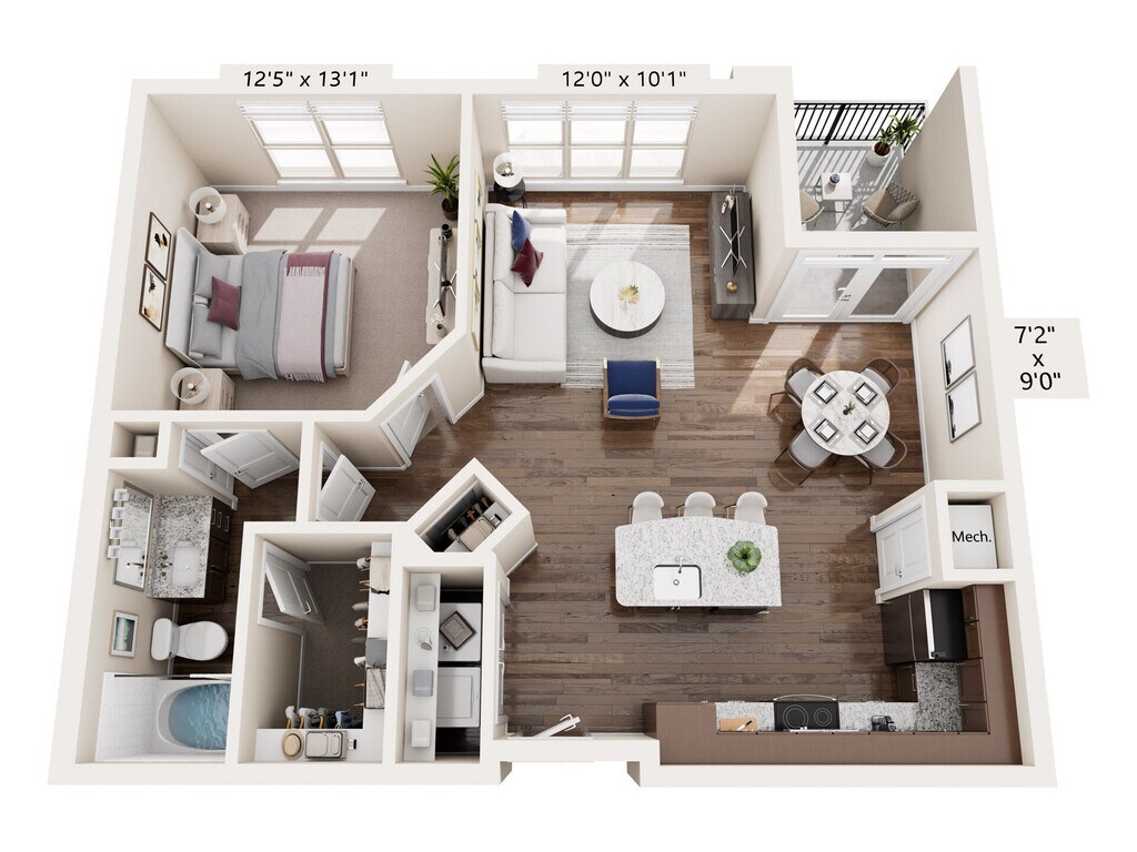 1 Dormitorio, 1 Baño, 860 pies²Precio Mensual TotalDisponible AhoraGalería del Modelo