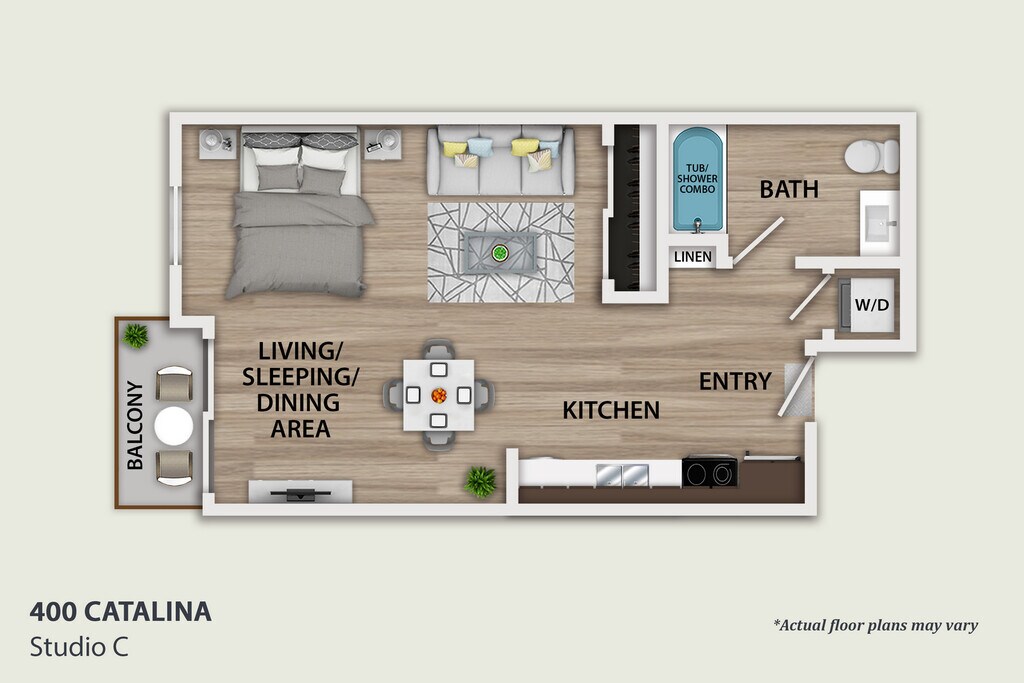 Estudio, 1 Baño, 614 pies²El más grandeEsta opción tiene las unidades más grandes para este modeloGalería del Modelo