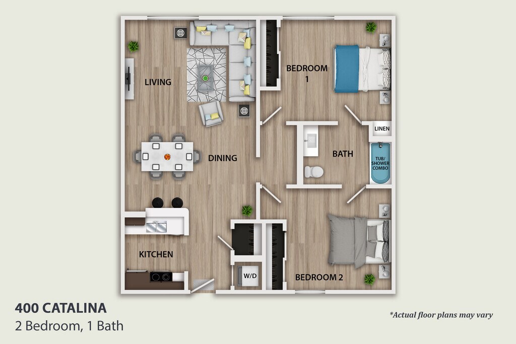 2 BED 1 BATH A - Plano 1 2 BED 2 BATH B