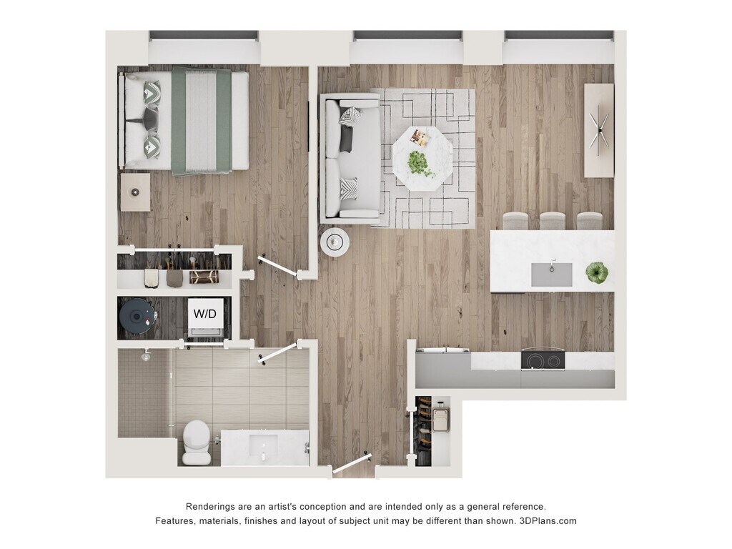 Estudio, 1 Baño, 293 pies²Disponible May 1Galería del Modelo