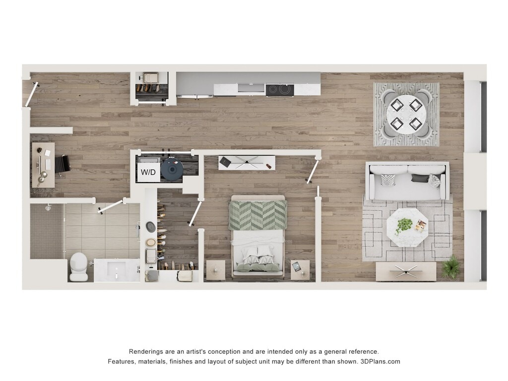 1 Dormitorio, 1 Baño, 614 pies²Disponible Apr 15Galería del Modelo