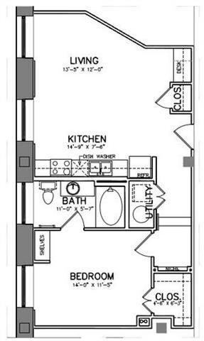 Modelo de apartamento: A14$2,1721 Dormitorio, 1 Baño, 1114 sq ftDisponible December 13, 2025![]()