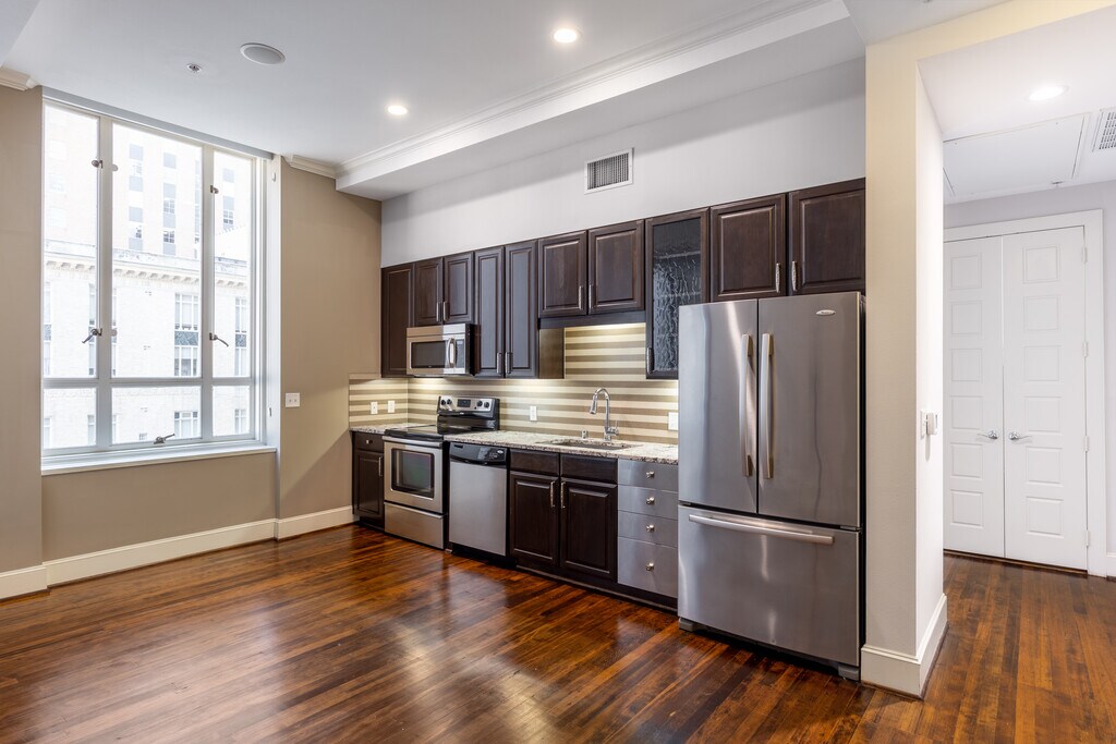 ¡Únete a nosotros en 400 North Ervay y cambia la manera de pensar en una vida urbana! Con una ubicación urbana dentro del histórico edificio del U. S. Post Office y la Corte en el centro de Dallas, Texas, no solo estamos en el corazón de la ciudad, sino también en el epítome de la artesanía y el lujo. Decoradas con elegancia atemporal, nuestras habitaciones están listas para hacerte parte de la historia. Equipado con todas las comodidades que puedas imaginar, los lofts y los penthouses en 400 North Ervay son el telón de fondo perfecto para tu activo estilo de vida. Las ventanas con persianas solares, techos altos y hermosos pisos de madera noble antiguos están allí para enmarcar tus nuevas vistas del centro de Dallas. Los electrodomésticos de acero inoxidable de primera línea, las encimeras de granito de acacia brasilera marrón, los accesorios Moen de primer nivel, el sistema de sonido inteligente y las alfombras de lujo en las habitaciones mejoran aún más tu experiencia. Al mismo tiempo, los vestidores grandes y las lavadoras y secadoras en el hogar hacen que sea fácil organizar el espacio. Afuera encontrarás todo lo que necesitas para disfrutar de una experiencia de vida lujosa. Todo comienza con la cuidadosa atención a cada detalle de la transformación de este edificio histórico en un nido de placer urbano. Sin modificar cualquiera de sus encantos, 400 North Ervay te da la bienvenida con una sala de estar magistral, impresionantes vistas al centro de la ciudad y una hermosa terraza en la azotea con un brasero. Además, tienes acceso inmediato al DART, así como estacionamiento reservado, recepción de paquetes, mantenimiento en el lugar y servicio de taxis disponible. Ponte en contacto con nosotros hoy mismo para hacer un recorrido y descubre por qué desearás hacer de 400 North Ervay tu nuevo hogar.