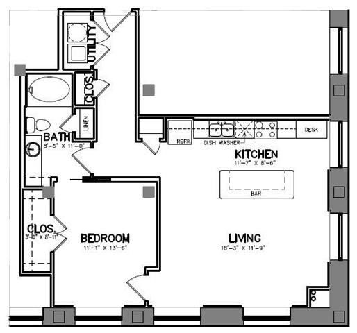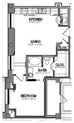 Unidad de apartamento: 230Modelo de apartamento: A15$2,5651 Dormitorio, 1 Baño, 1197 sq ftDisponible AhoraPlano: A8
