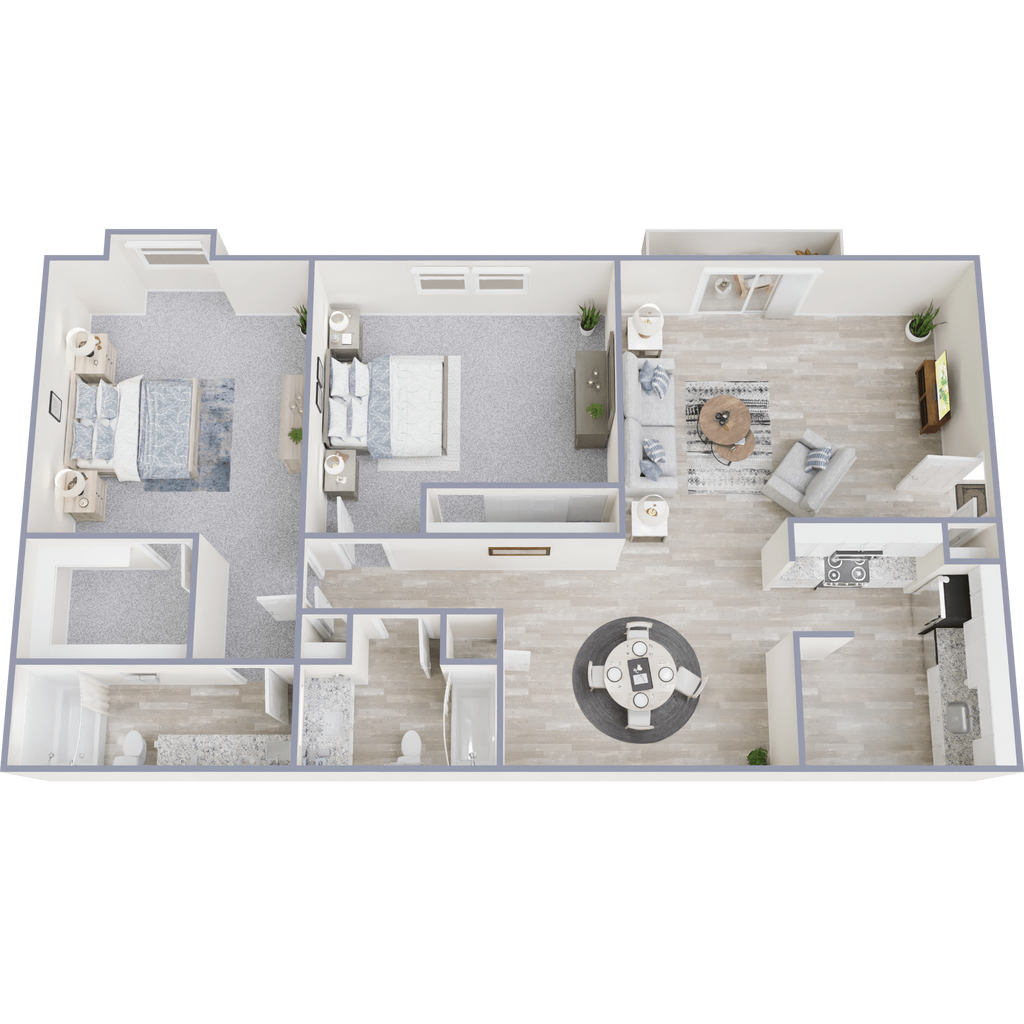 2 Dormitorios, 2 Baños, 715-1107 pies²Disponible AhoraEl más grandeEsta opción tiene las unidades más grandes para este modeloGalería del Modelo