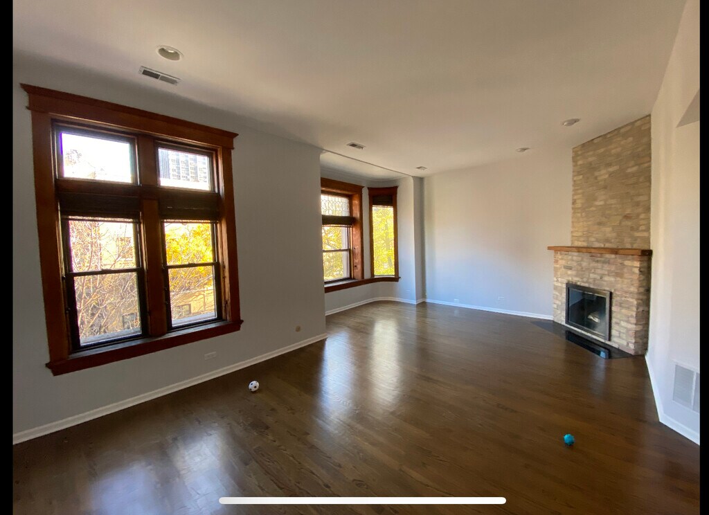 Spacious 3bedroom/2bath apartment in classic greystone in Buena Park neighborhood. Large living room filled with windows, high ceilings, hardwood floors, and wood burning fireplace. Bright dine-in area off kitchen. Master bedroom with walk-in closet. Walk-in shower in one bathroom and tub/shower combo in second bathroom. In-unit washer and dryer in dedicated laundry room. Off-street parking available in rear of building ($200/month, small cars/SUVs only, no minivans/trucks). Friendly dogs welcome (limit 2) with $250 non-refundable pet deposit. Close to Walt Disney Magnet School, Horace Greeley Elementary, and Lakeview High School. One block from lakefront including tennis courts, golf course, and several playgrounds.