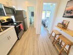Apartment comes furnished, there is NO UNFURNISHED option available. 1-12 month lease options available. First, last, and security deposit to move in. Rent varies based on lease length. newly renovated 1 bedroom apartment on 2nd floor of large house. New flooring, recessed lighting, fresh paint. New kitchen with plenty of cabinets and countertops, stainless appliances (stove, microwave, fridge), large deep sink (no dishwasher). New bathroom with shower/tub combo featuring subway ceramic tile, built in shelving, and linen closet. Small living room. Dedicated parking. HUGE fully fenced yard (90' x 127') with picnic table under the shade of mango trees that is shared with the other apartment. Shared washer and dryer with the other apartment. This apartment is conveniently located just 3 blocks from the SunRunner 40th Street stop. Approximate Room Dimensions: Kitchen 9'8" x 11'7" Bedroom 9'8" x 8'3" (plus closet) Living room 9'8" x 5'9" Bathroom 6'4" x 6